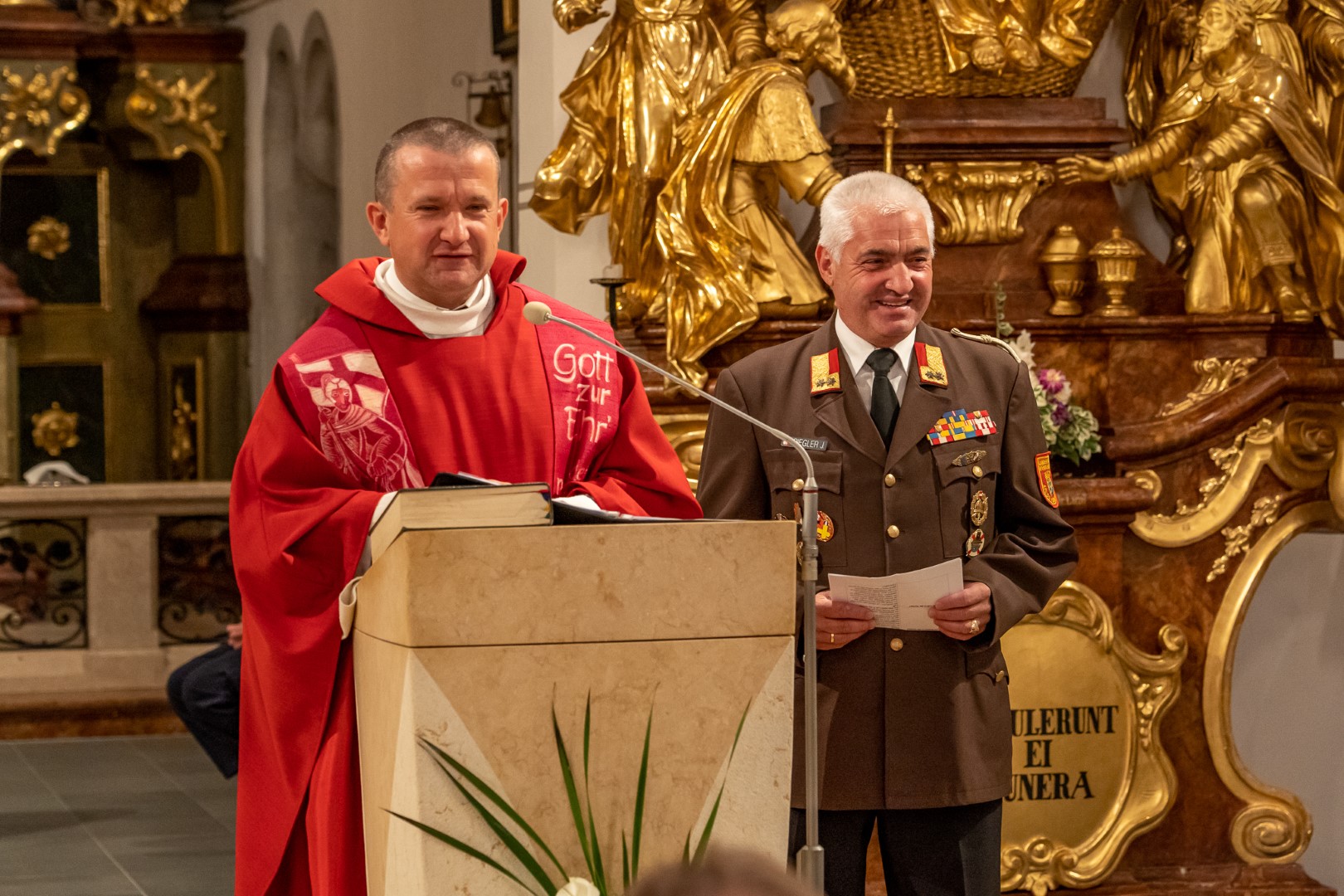 Mit der Stadtkapelle Mank marschierten wir gemeinsam in die Kirche, wo uns der Bezirksfeuerwehrkurat Daniel Kostrzycki und Feuerwehrkurat Johann Reiterlehner bereits empfingen um mit uns die Heilige Messe zu feiern.