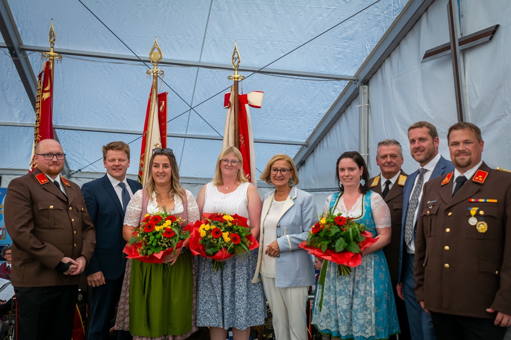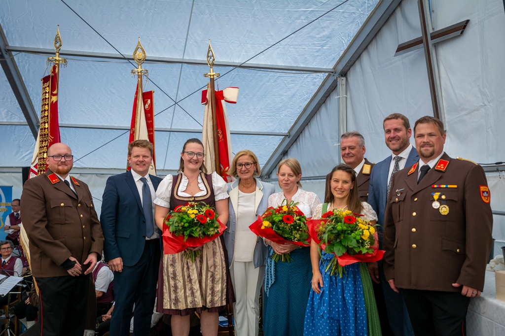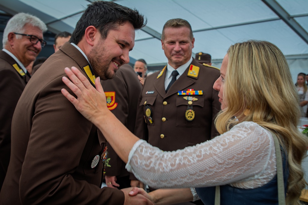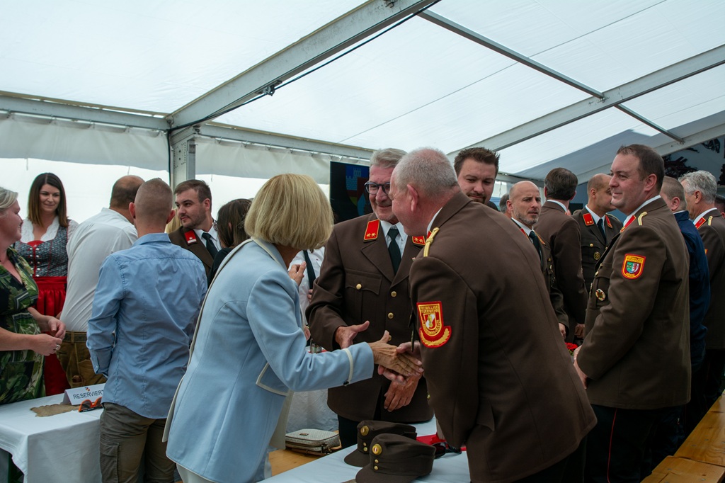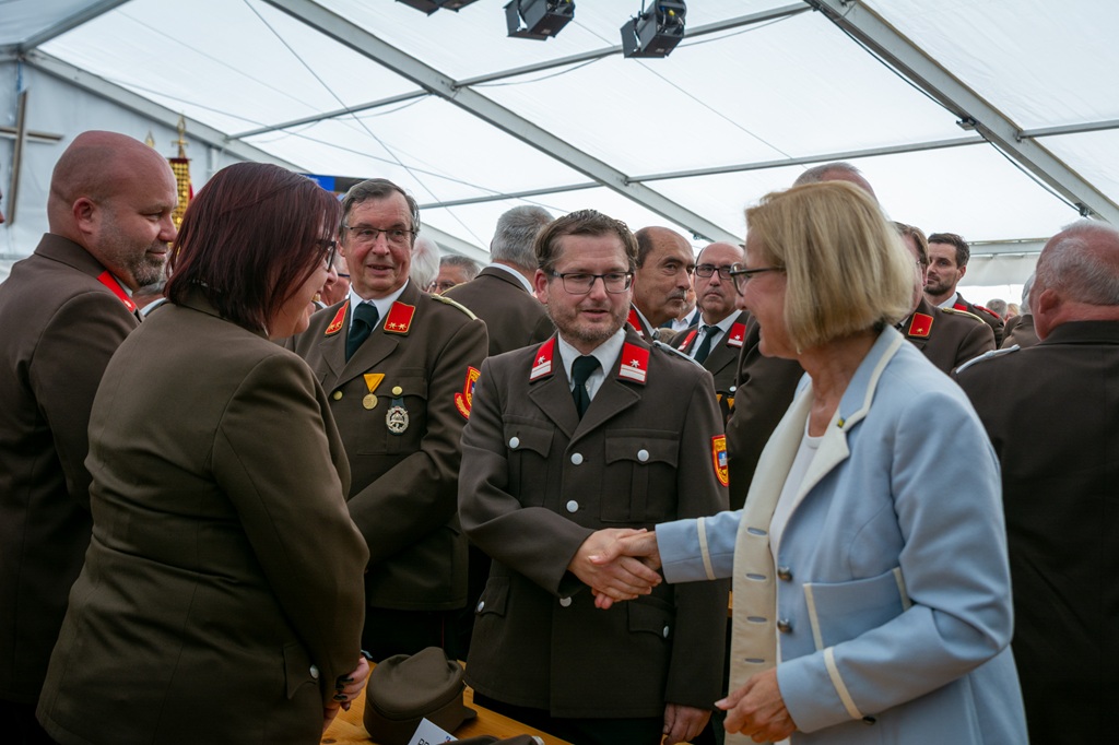 Sie würdigte das Engagement der vielen Ehrenamtlichen, das keine Selbstverständlichkeit sei: „Das ist es, worauf es ankommt. Denn es ist keine Selbstverständlichkeit, ehrenamtlich tätig zu sein. Die bereit sind in der Nacht aufzustehen und unter Tags die Arbeit zu unterbrechen. Die Familie zurücklassen, um in den Einsatz zu gehen. Dankeschön für euren Einsatz.“ Besonders erfreut zeigte sich die Landeshauptfrau auch über die neugegründete Feuerwehrjugend in Schollach. Dies steht für das gemeinsame Ziel: Alles zu tun für die beste Zukunft unserer Kinder