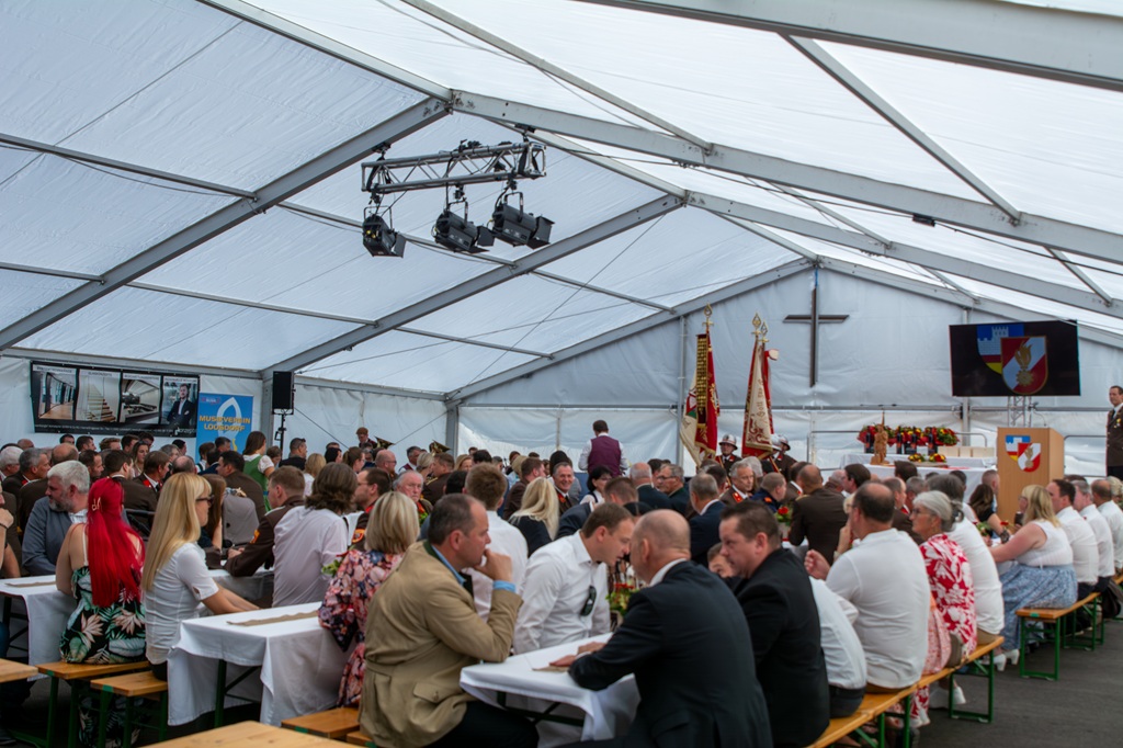 Abschließend wurden Auszeichnungen und kleine Präsente an besonders engagierte Helfer überreicht und der Festakt feierlich mit dem Abspielen der Landeshymne beendet. Der Ausklang dieses Festtages fand mit einem Dämmerschoppen statt, bei dem die Gäste Gelegenheit hatten, das neue Haus in Augenschein zu nehmen und sich mit Speis und Trank zu stärken.