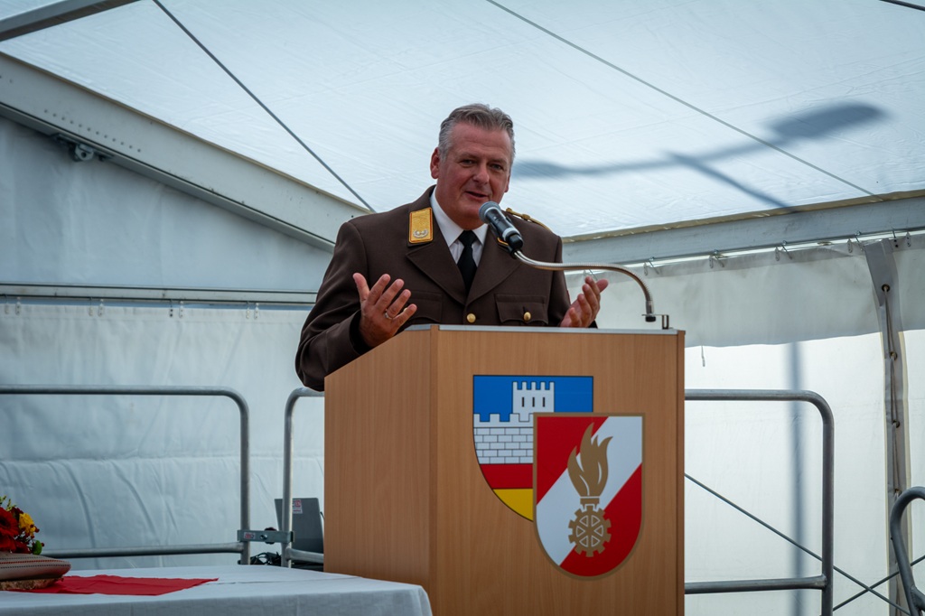 In seiner Rede betonte der niederösterreichische Landesfeuerwehrkommandant, dass die Leistung und das Engagement, dass dieses neue Feuerwehrhaus auch repräsentiert, nicht selbstverständlich ist. Dieses ehrenamtliche Engagement, macht das Feuerwehrwesen in Österreich und auch in Niederösterreich zu etwas ganz Besonderen. Die niederösterreichischen Feuerwehren haben in den vergangenen Jahren und Jahrzehnten immer wieder ihre Schlagkraft bewiesen. Sei es beim täglichen Einsatzdienst, nationalen Katstrophen, wie letzten September, aber auch internationale Einsätze, wie diesen Sommer wieder in der Waldbrandbekämpfung in Südeuropa. Dieses hochprofessionelle und schlagkräftige System gibt es in ganz Europa nicht, stellte der Landesfeuerwehrkommandant fest.