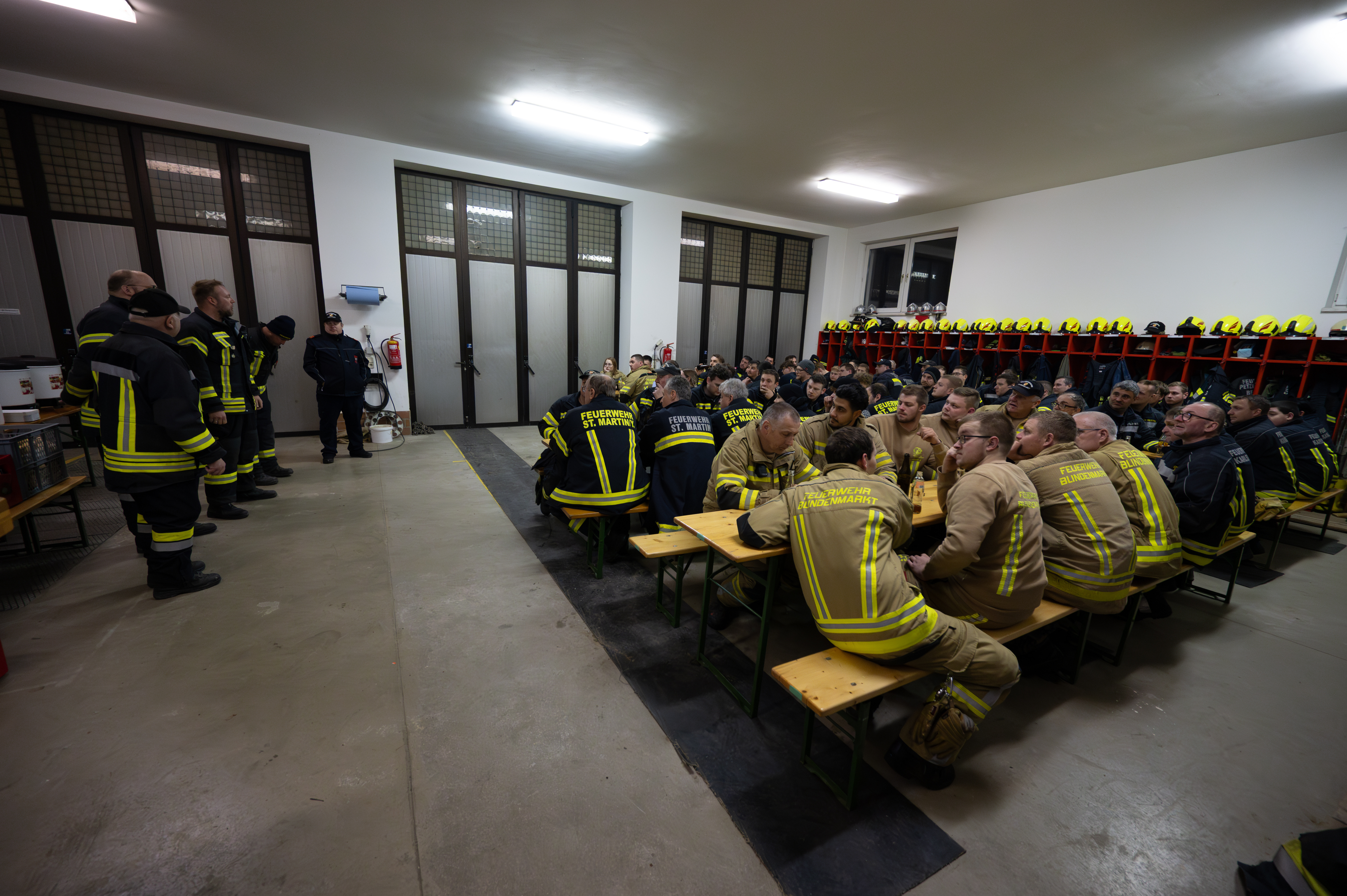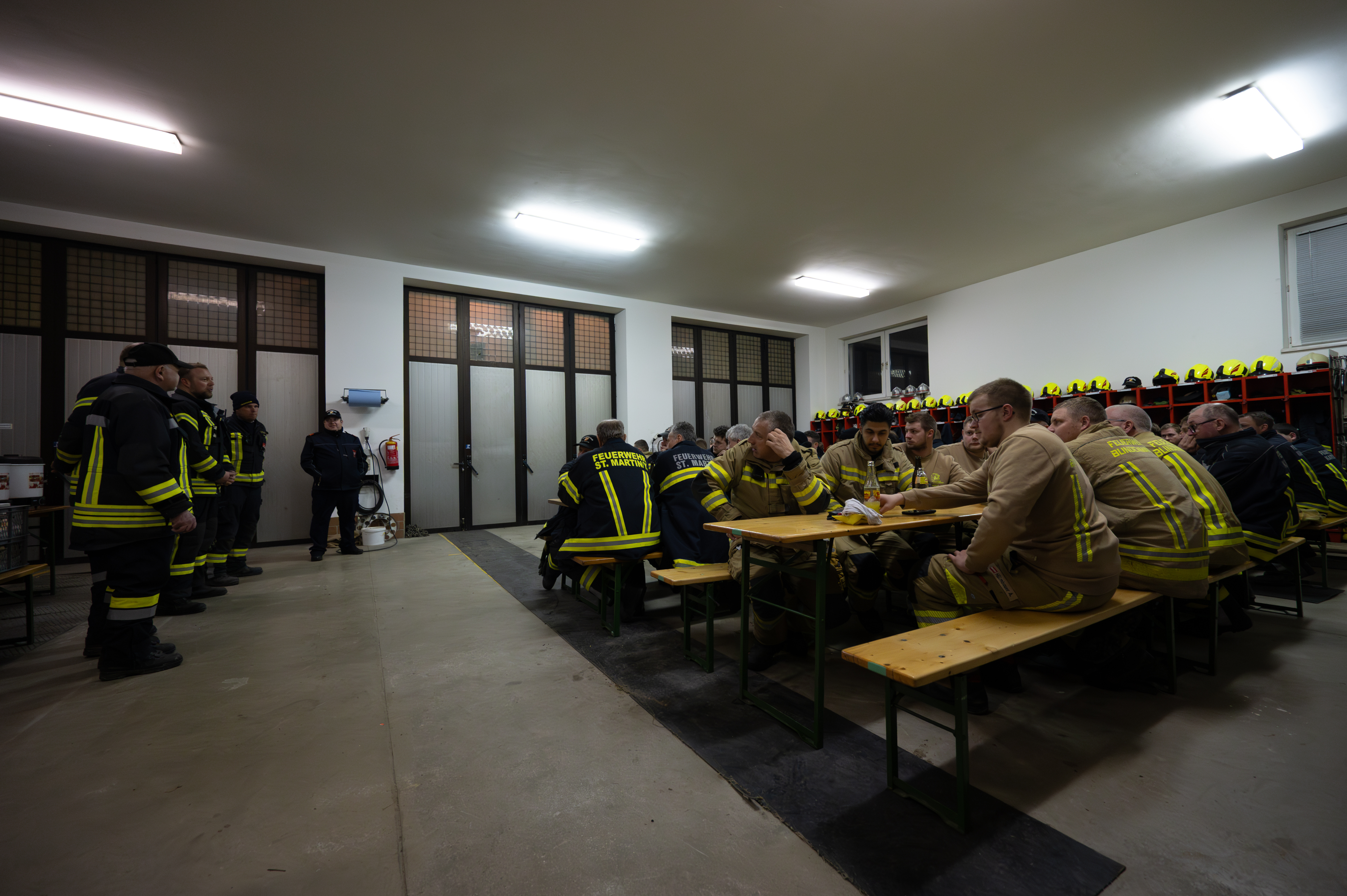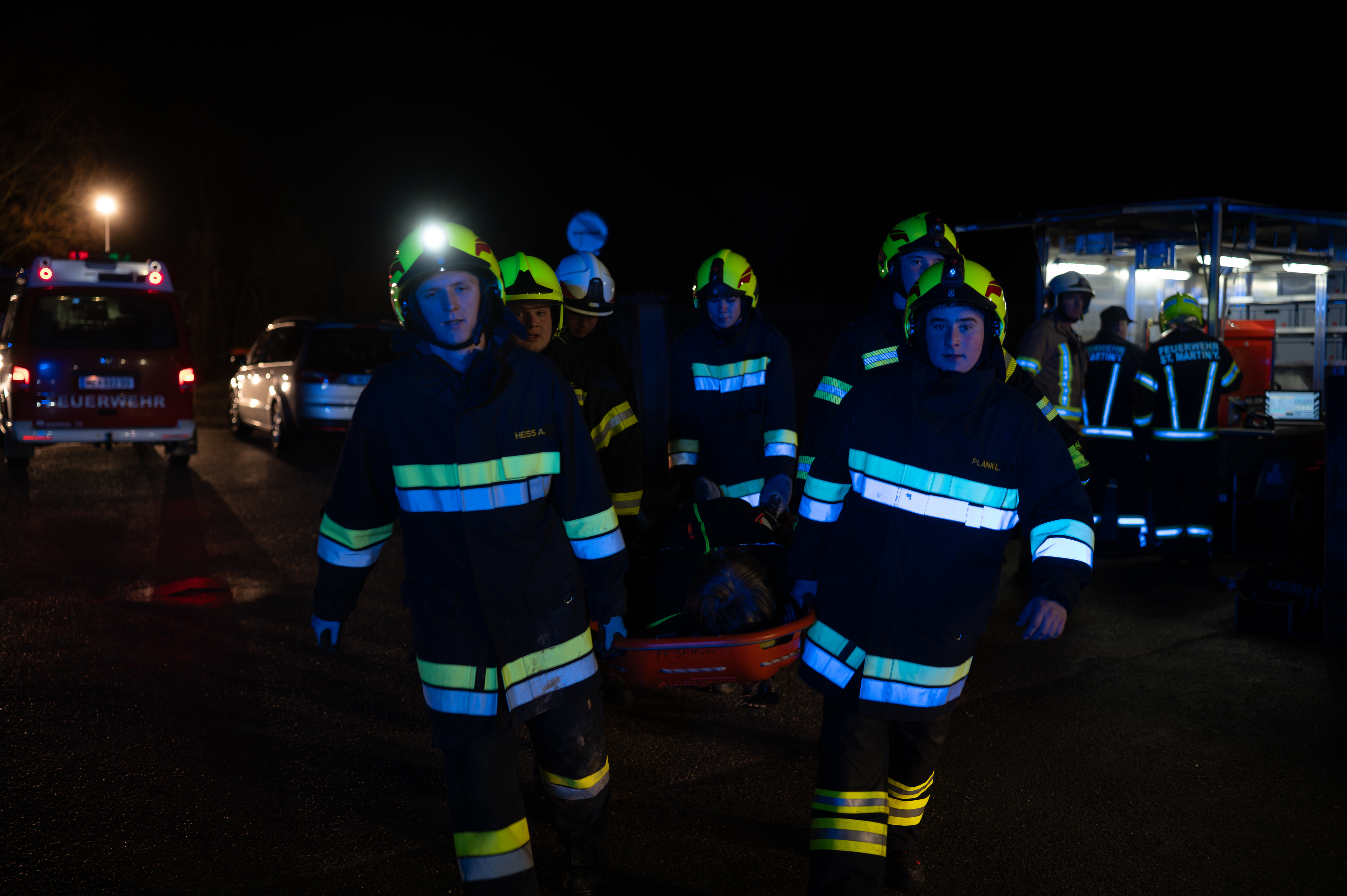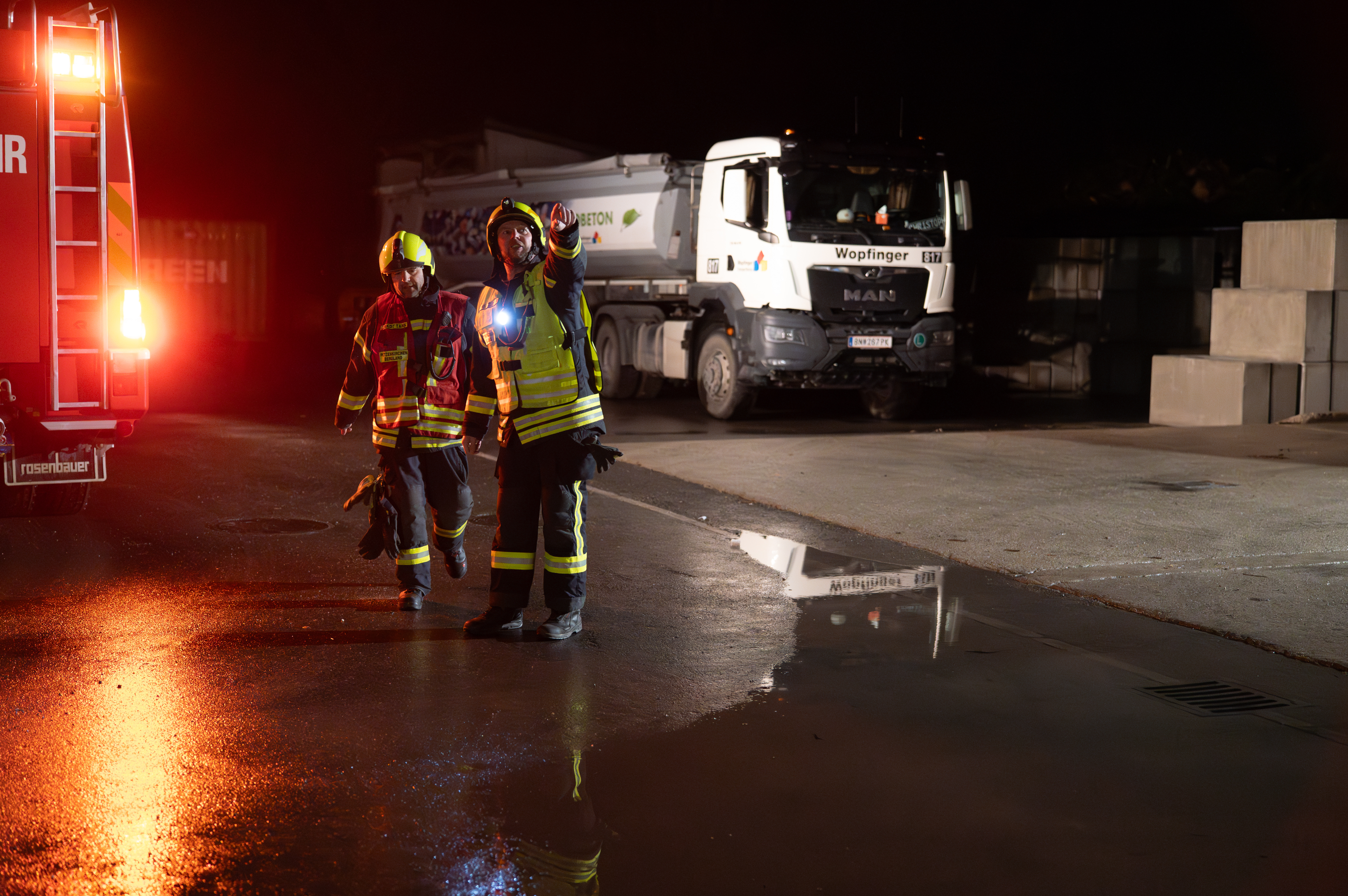 Als weiteres Szenario musste ein bewusstloser Mitarbeiter von einem Radlader gerettet werden. Auch diese Aufgabe wurde von den Einsatzkräften erfolgreich bewältigt. Nach Abschluss der Übung fand im Feuerwehrhaus Petzenkirchen eine kurze Nachbesprechung statt. Übungseinsatzleiter Kaltenhuber sowie die Übungsbeobachter Schmidl und Kupfer bedankten sich bei allen teilnehmenden Feuerwehrmitgliedern für ihr Engagement und die gute Abarbeitung des Szenarios. Ein besonderer Dank gilt dem Hausherren und Betriebsleiter Michael Winkler für die Möglichkeit, auf dem Areal solche Szenarien üben zu können.