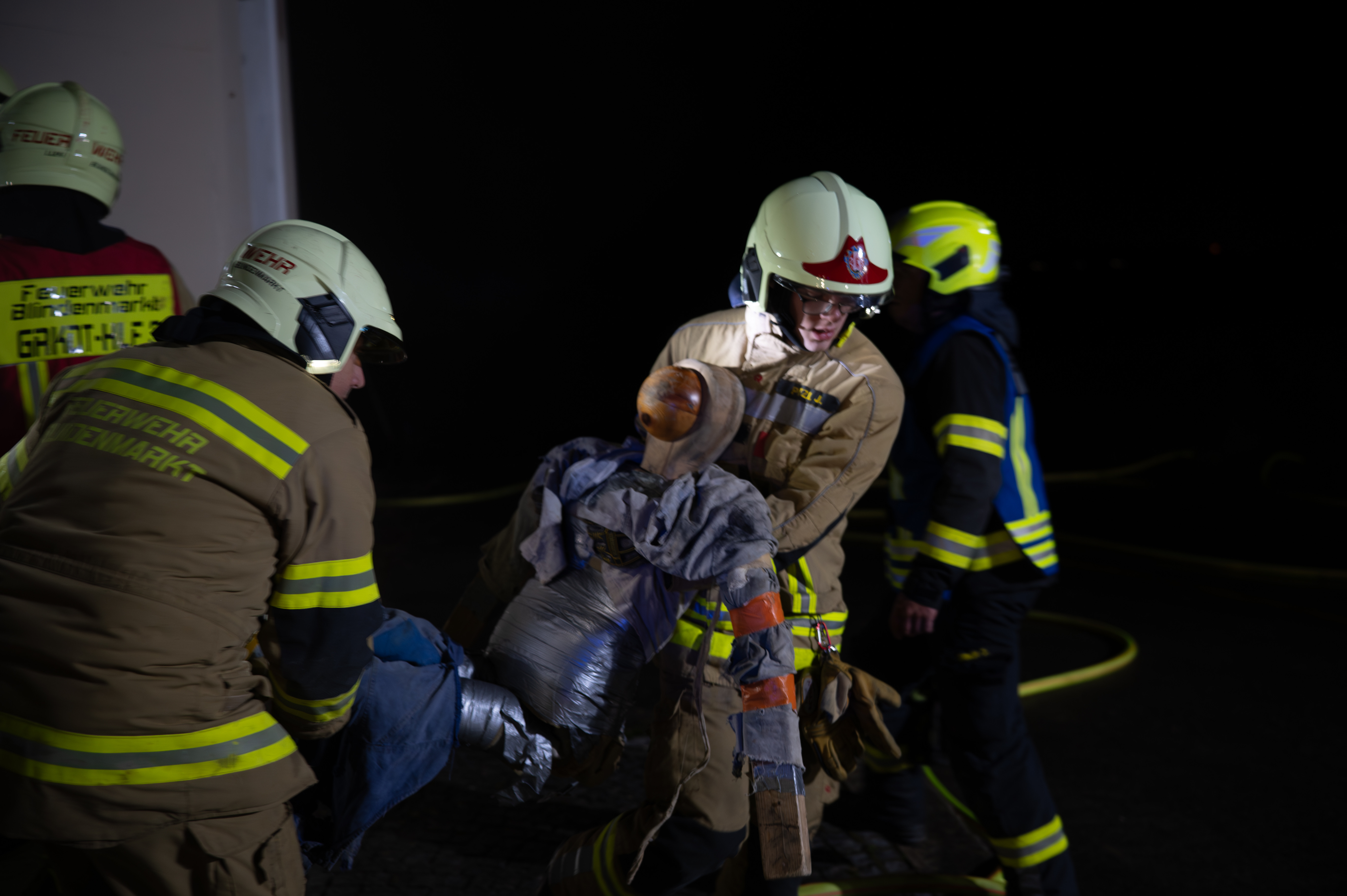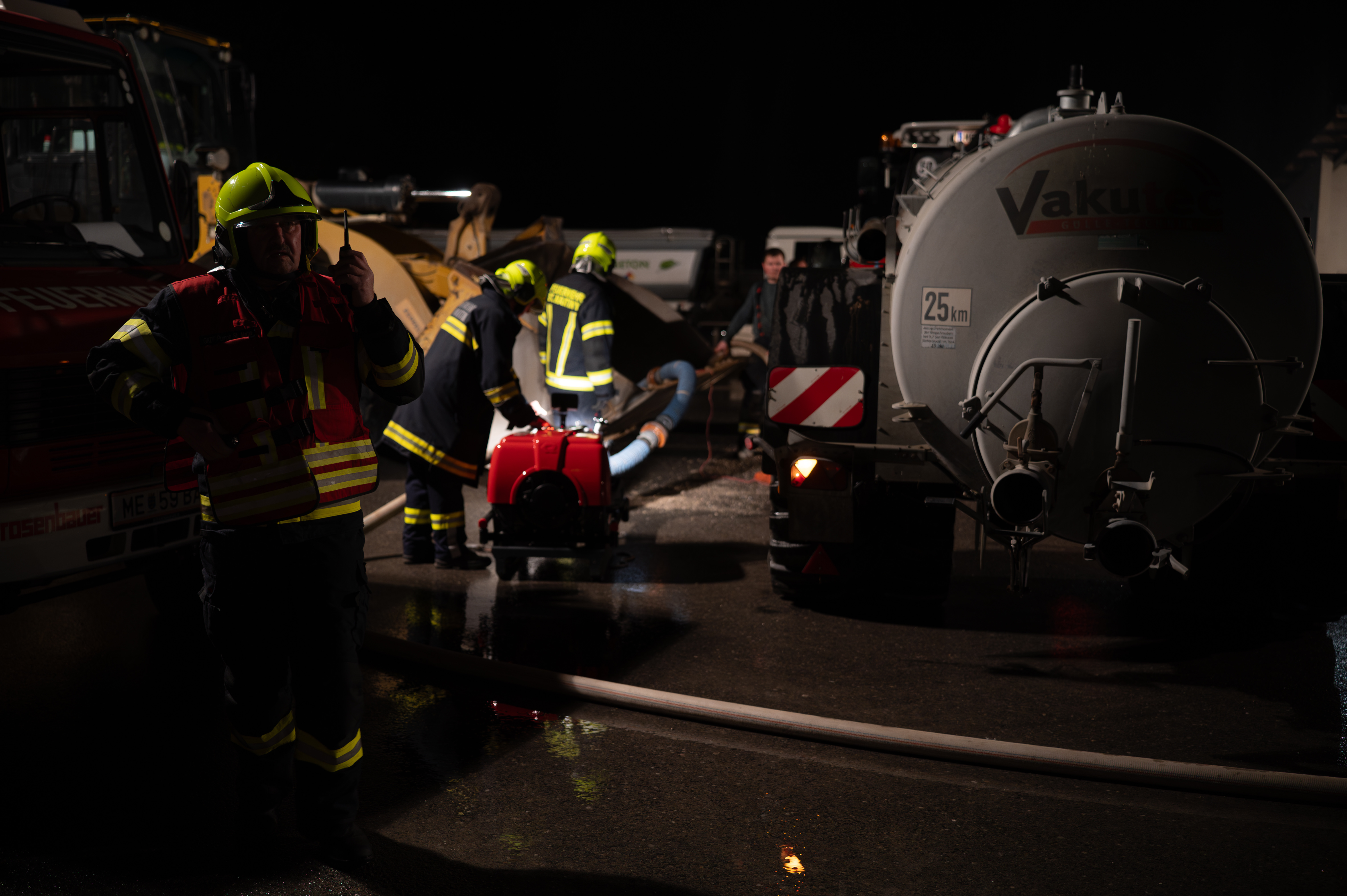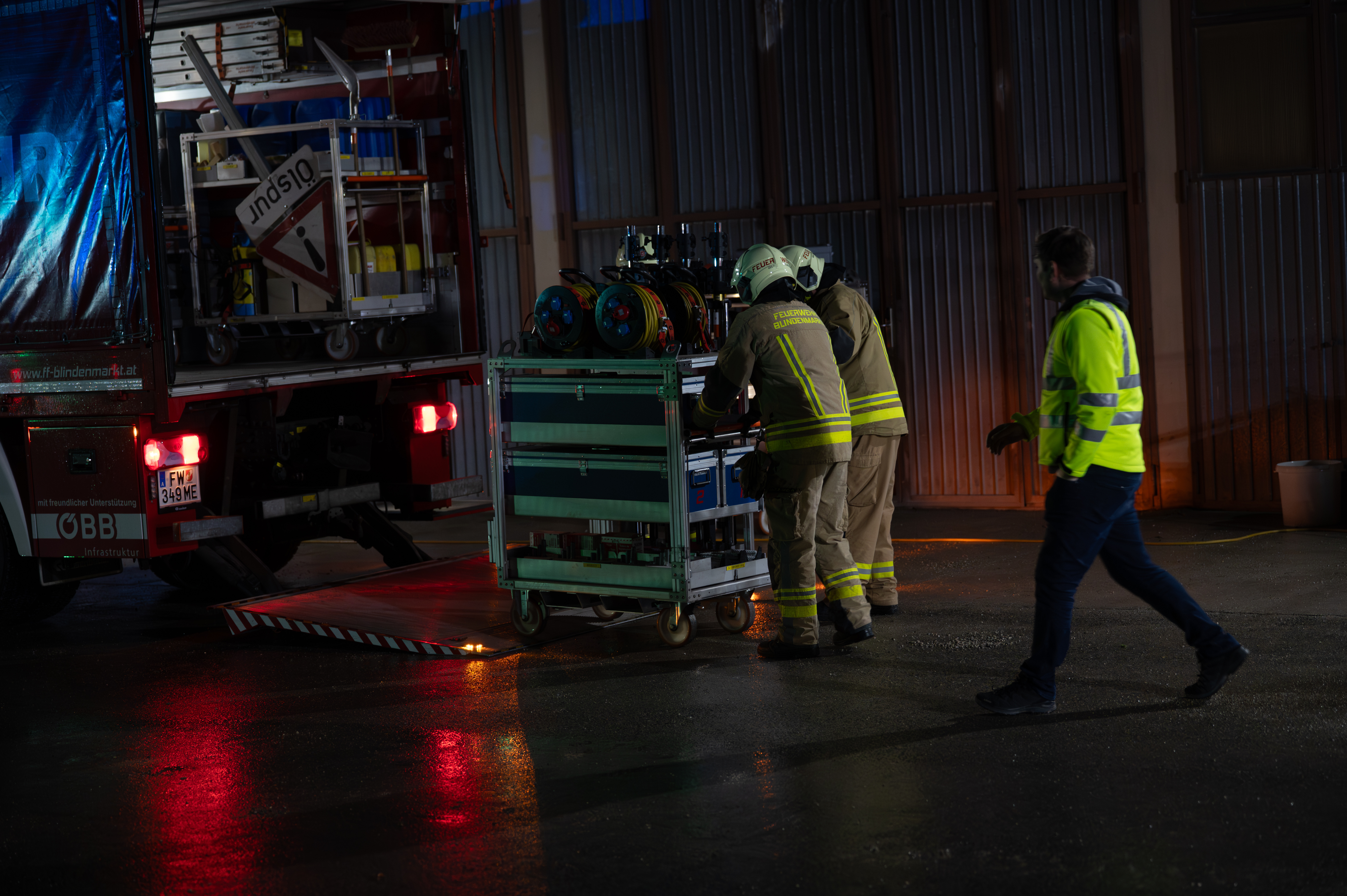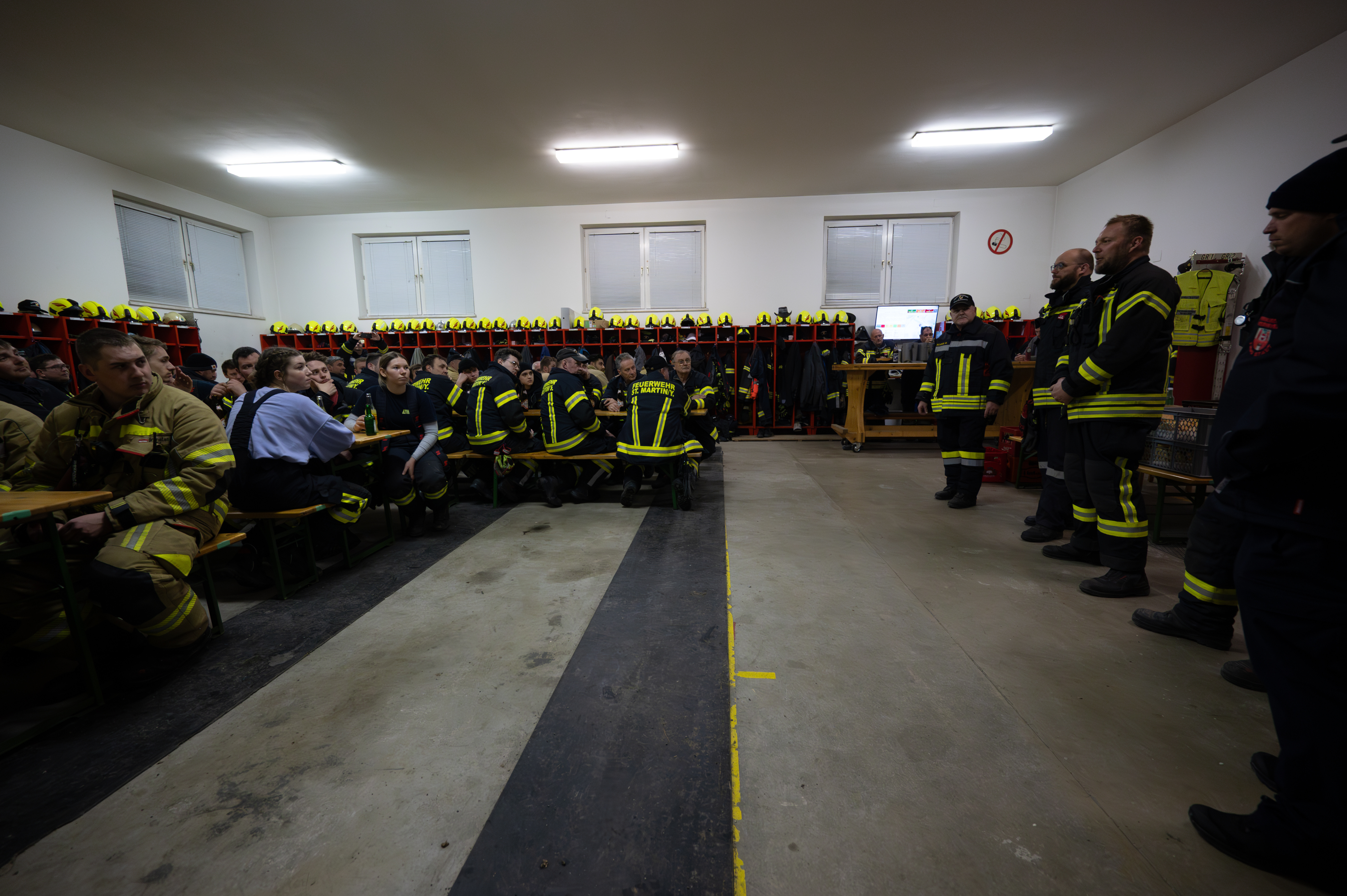 Als weiteres Szenario musste ein bewusstloser Mitarbeiter von einem Radlader gerettet werden. Auch diese Aufgabe wurde von den Einsatzkräften erfolgreich bewältigt. Nach Abschluss der Übung fand im Feuerwehrhaus Petzenkirchen eine kurze Nachbesprechung statt. Übungseinsatzleiter Kaltenhuber sowie die Übungsbeobachter Schmidl und Kupfer bedankten sich bei allen teilnehmenden Feuerwehrmitgliedern für ihr Engagement und die gute Abarbeitung des Szenarios. Ein besonderer Dank gilt dem Hausherren und Betriebsleiter Michael Winkler für die Möglichkeit, auf dem Areal solche Szenarien üben zu können.