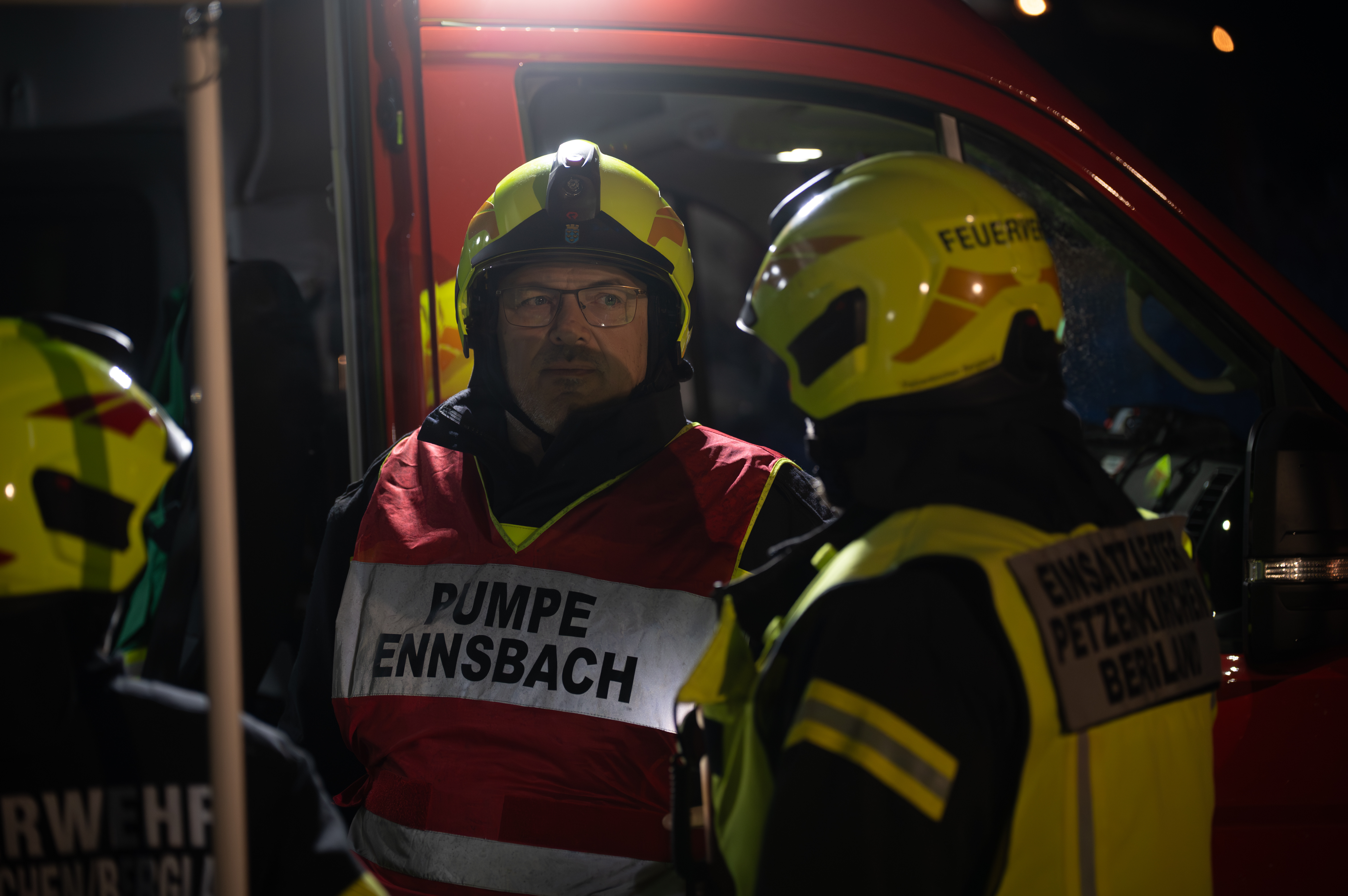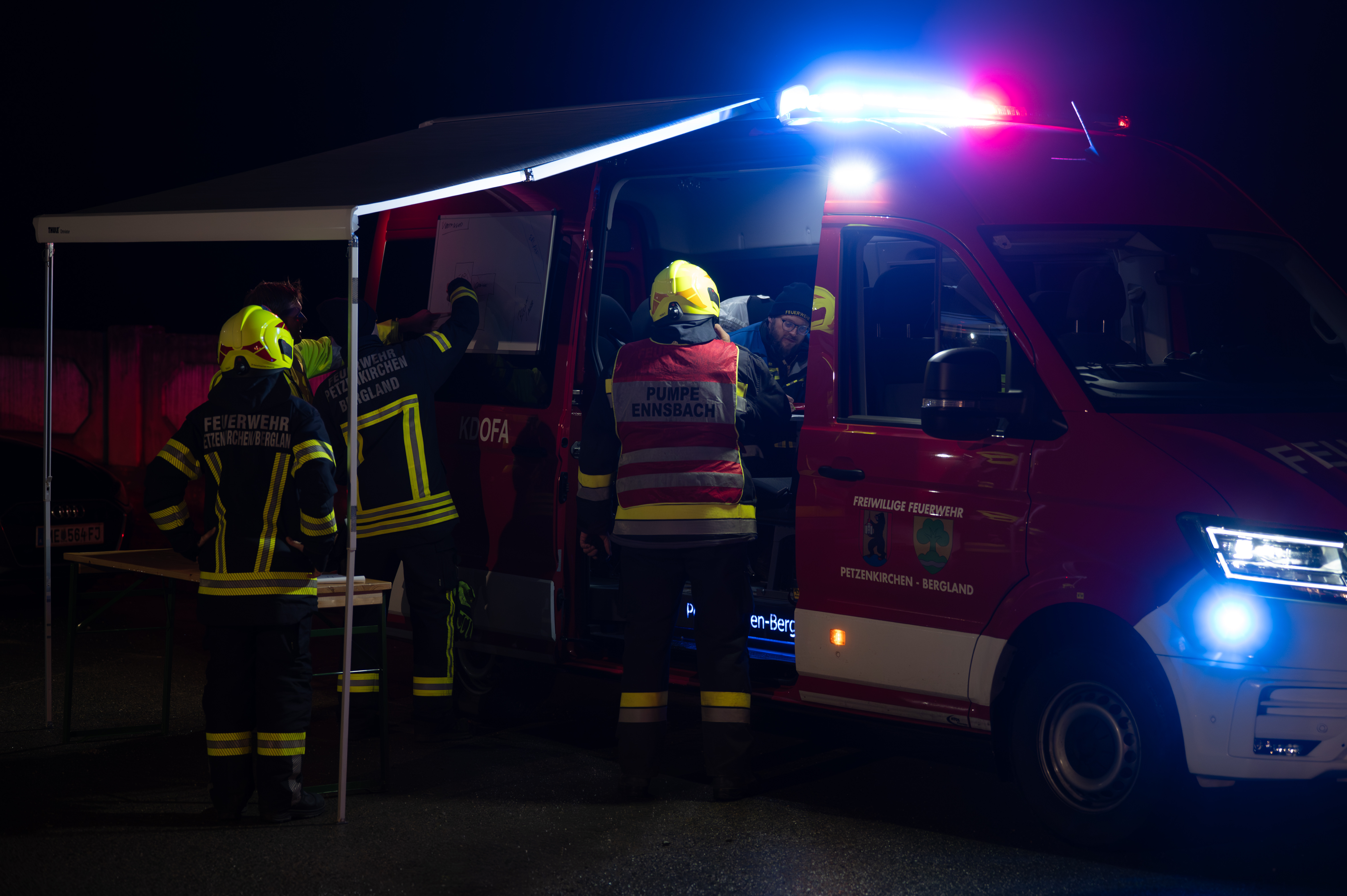 An der Übung nahmen die Feuerwehren Petzenkirchen-Bergland, Ennsbach, Karlsbach, St. Martin und Blindenmarkt mit 13 Fahrzeugen und 75 Mitgliedern teil.
