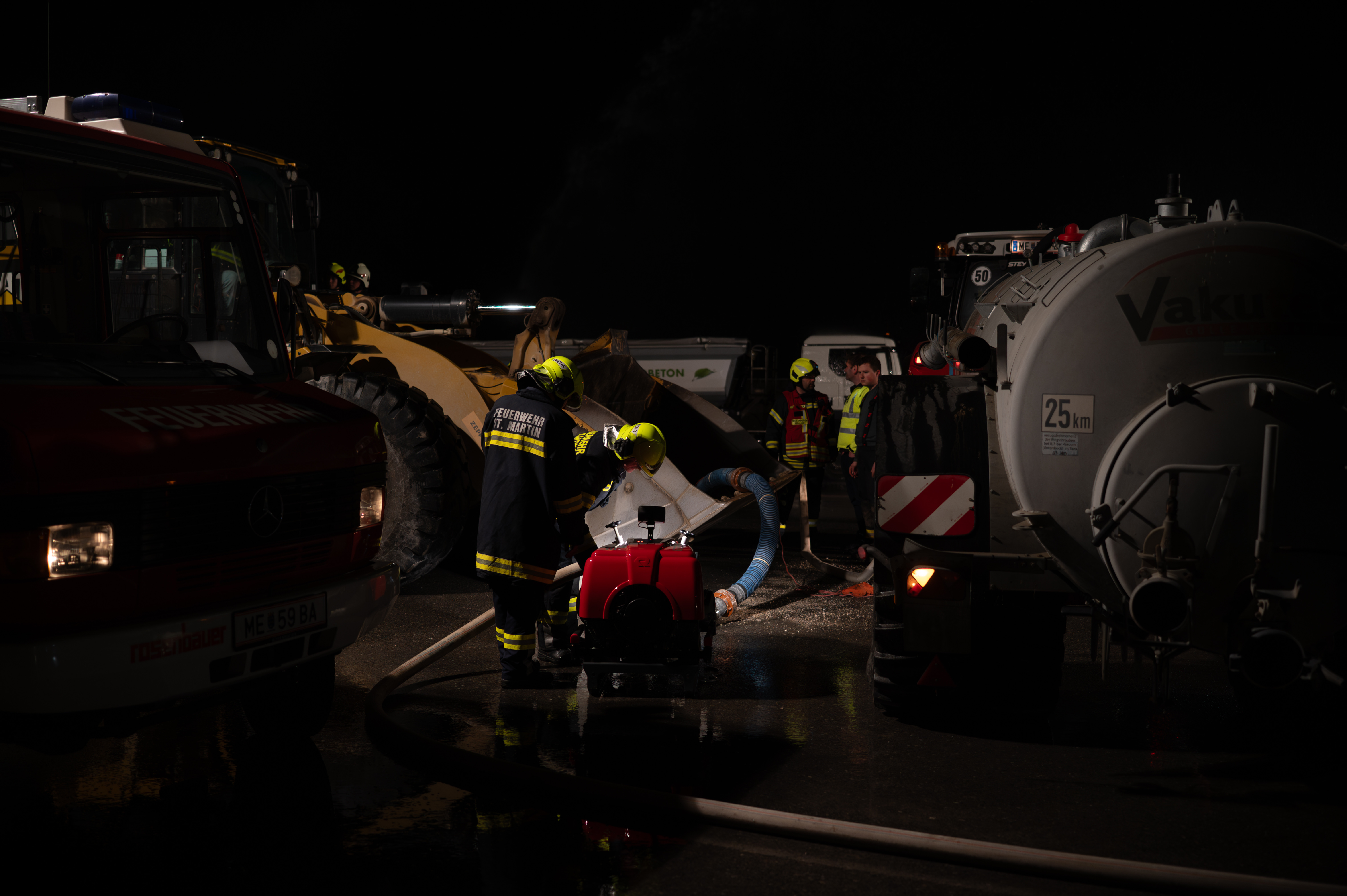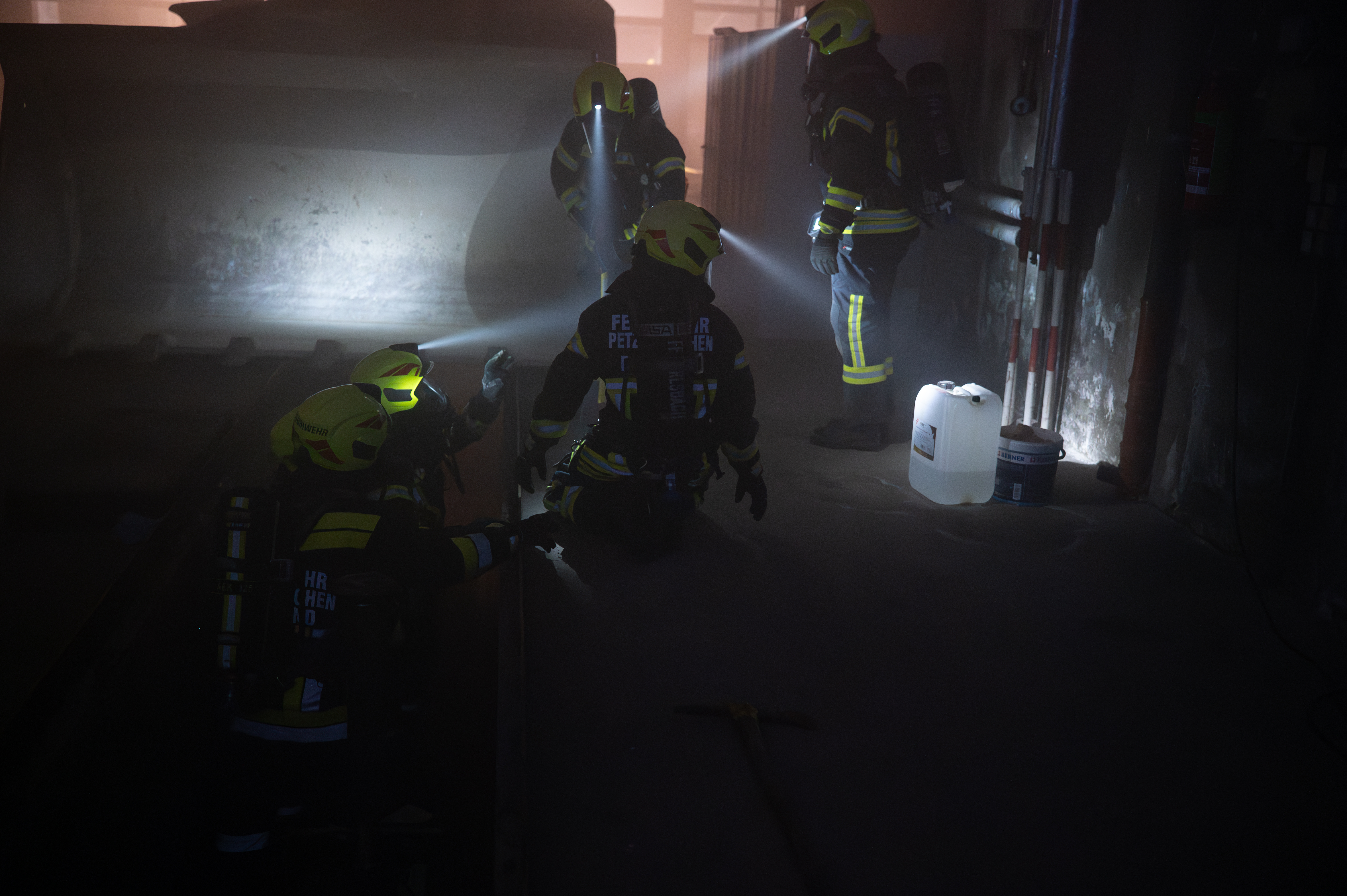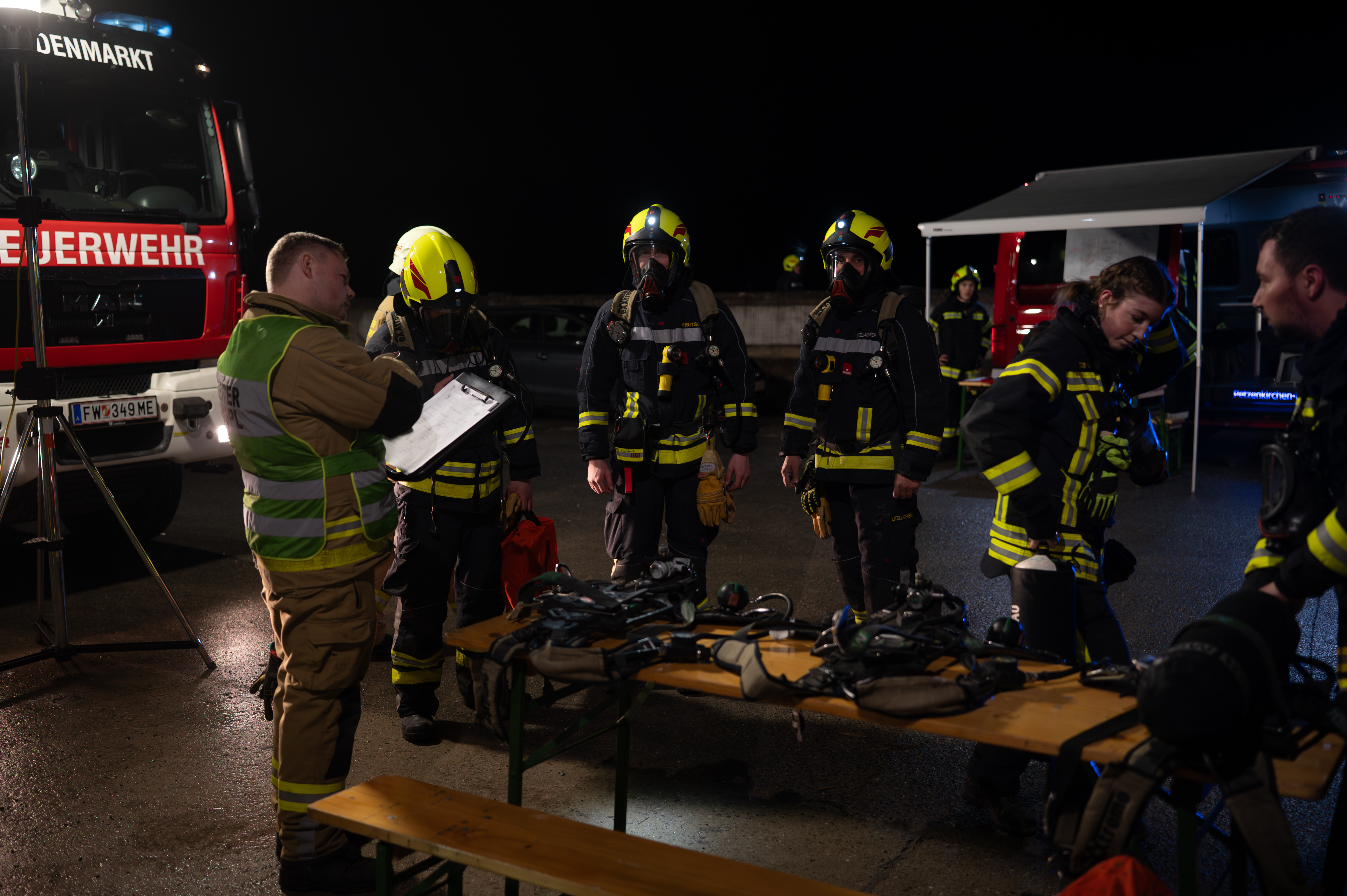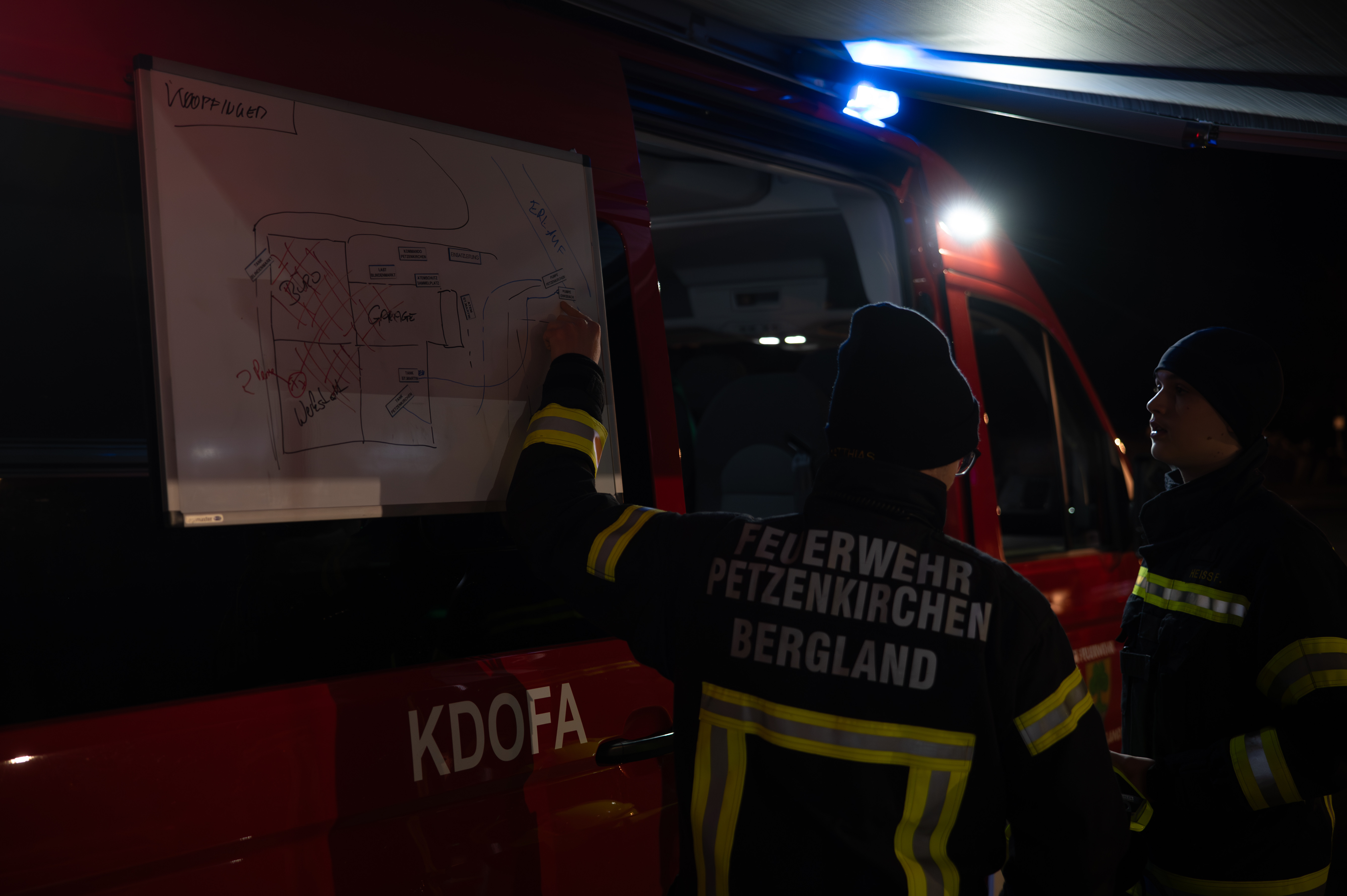Das Übungsszenario stellte die Einsatzkräfte vor eine herausfordernde Situation: Ein Brand, der sich von der Werkstatt auf das Bürogebäude ausbreitete, sowie mehrere vermisste Personen, die gerettet werden mussten. Im Innenhof wurde von Tank und Pumpe Petzenkirchen mit einem Innen- und Außenangriff gestartet, während die Löschwasserversorgung mittels Tragkraftspritze von der Erlauf durch mehrere Feuerwehren sichergestellt wurde. Die nachrückenden Feuerwehren unterstützten umgehend mit Atemschutztrupps bei der Personenrettung und Brandbekämpfung. Parallel dazu wurden im Bürogebäude mehrere vermisste Personen aus dem stark verrauchten Gebäude gerettet. Gleichzeitig wurden die Einsatzleitung und der Atemschutzsammelplatz am Vorplatz eingerichtet.