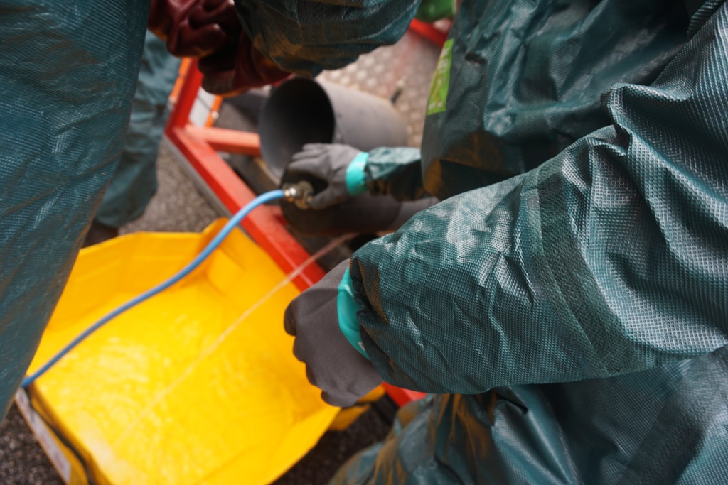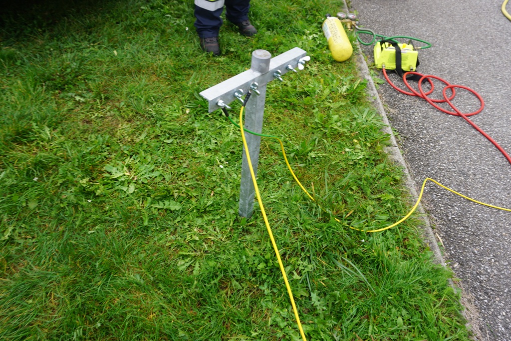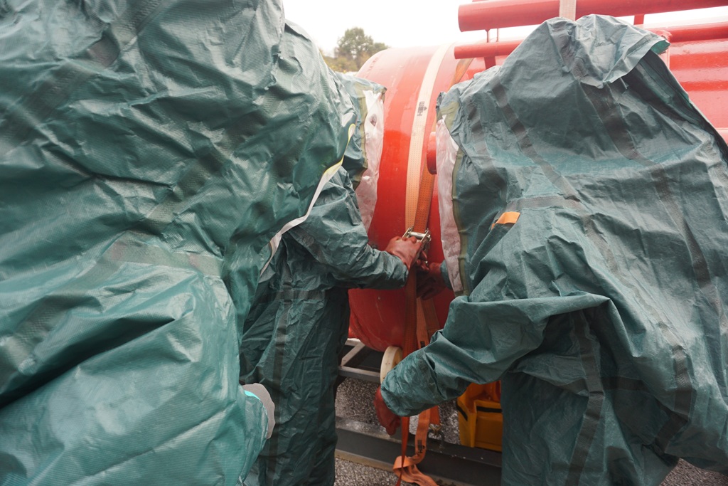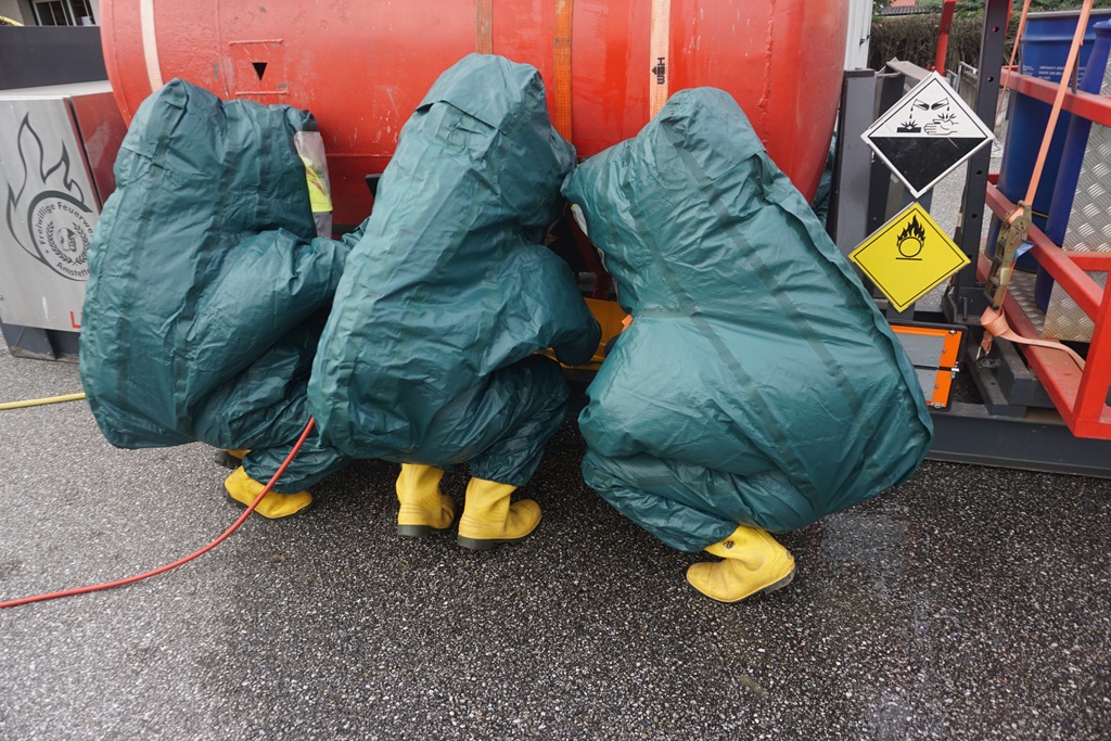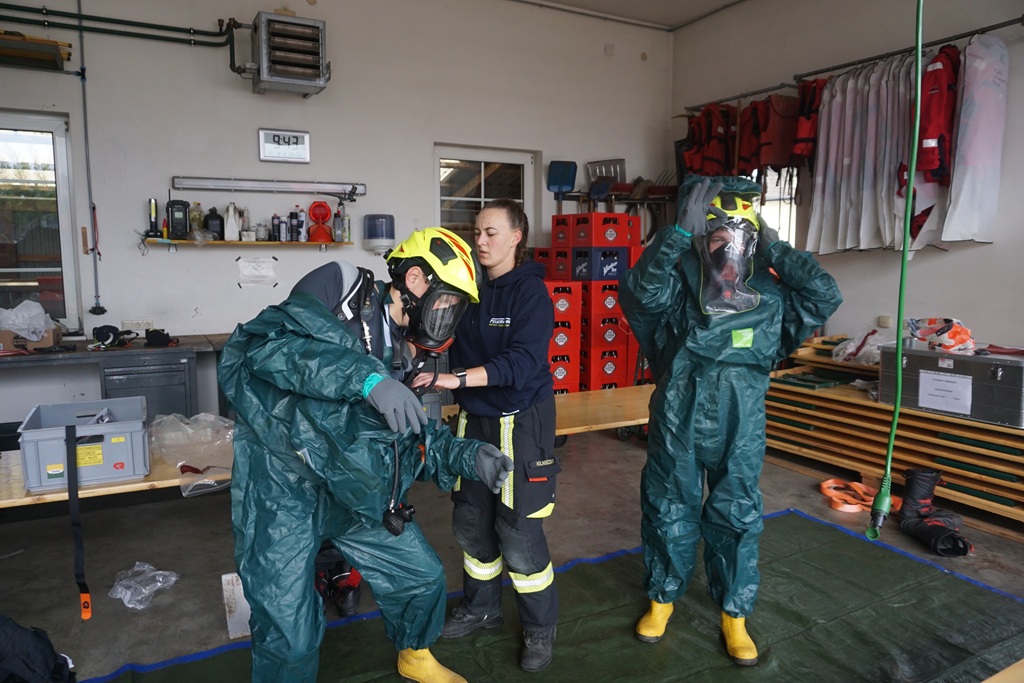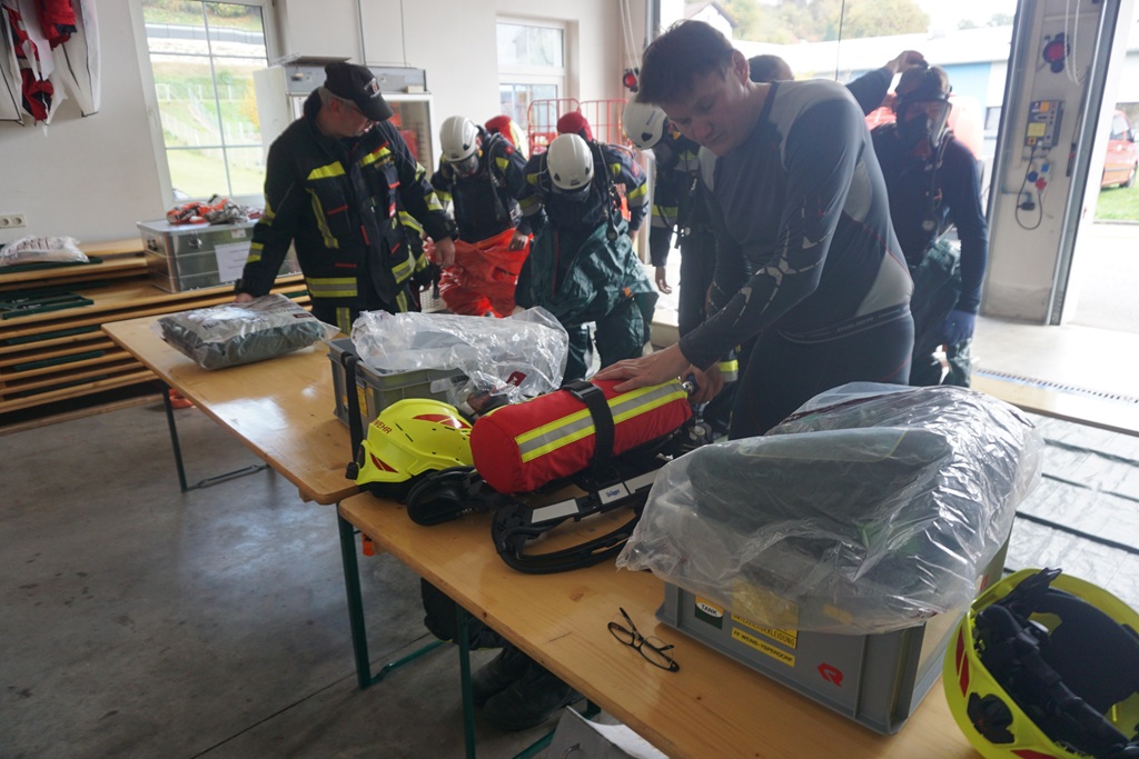Mit 2 Trupps der Schutzstufe 2 wurde ein Szenario (Leck 5) mit den in den Feuerwehrfahrzeugen der FF Persenbeug und Weins-Ysperdorf vorhandenen Gerätschaften wie Dichtungsmitteln, Hebekissen, Auffangbehälter, Kanaldichtkissen etc, abgearbeitet. Auch Afkdt BR Rainer RUSA konnte sich ein Bild davon machen.