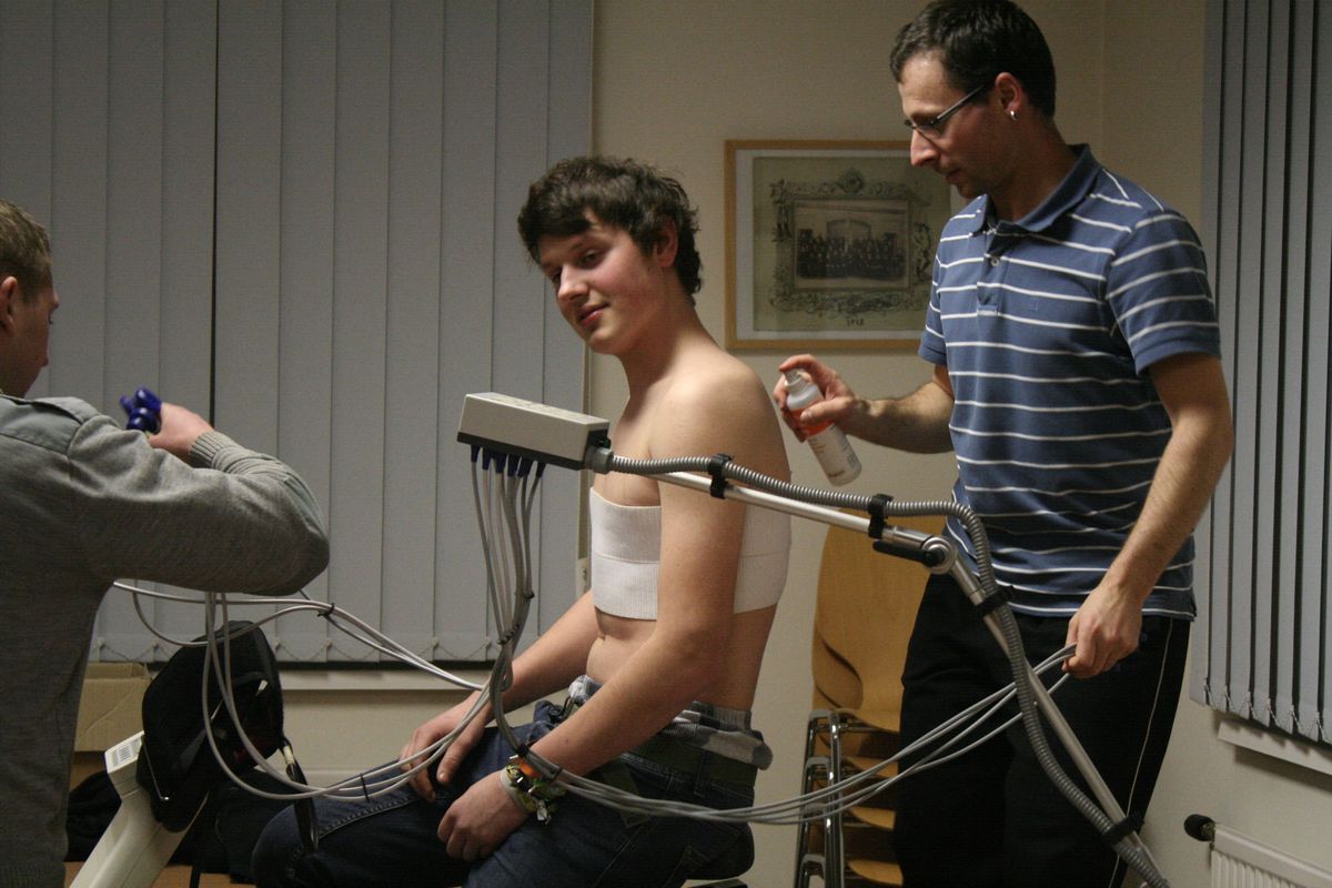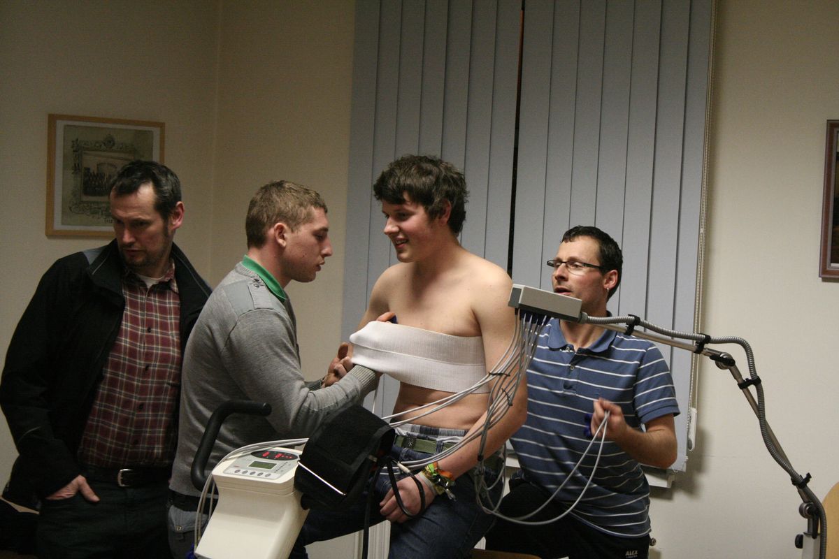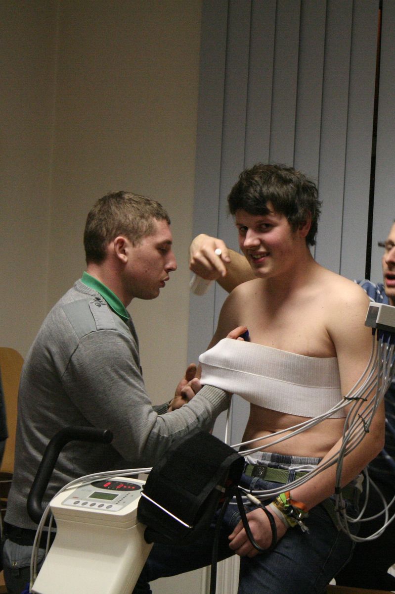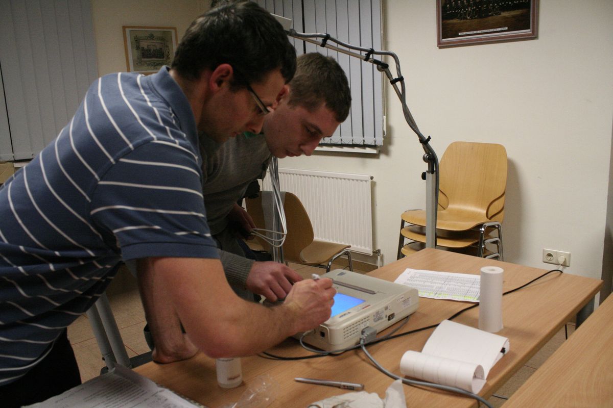 Nach und nach wurden die 80 Kandidaten der Unterabschnittsfeuerwehren am Ergometer und Spirometer auf deren Tauglichkeit untersucht. Die medizinische Leitung hatten die Feuerwehrärzte Hans-Jörg Fedrizzi, Andreas Fritsch und Dr. Fichtenberg inne.