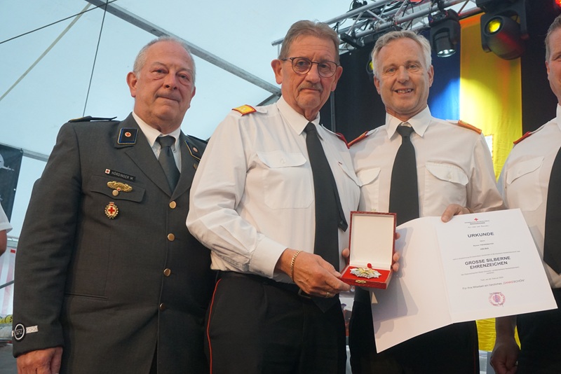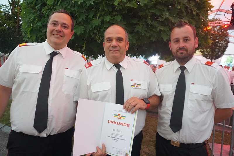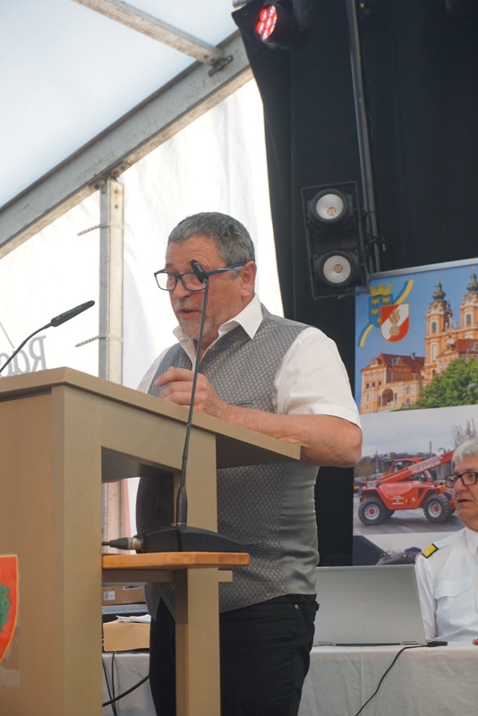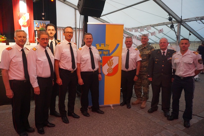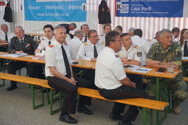Stellvertretend für alle anwesenden Ehrendienstgrade wurden Ehrenoberbrandrat Roman Thennemayer, Ehrenverwaltungsrat Günter Annerl und EOV Georg Neulinger begrüßt.