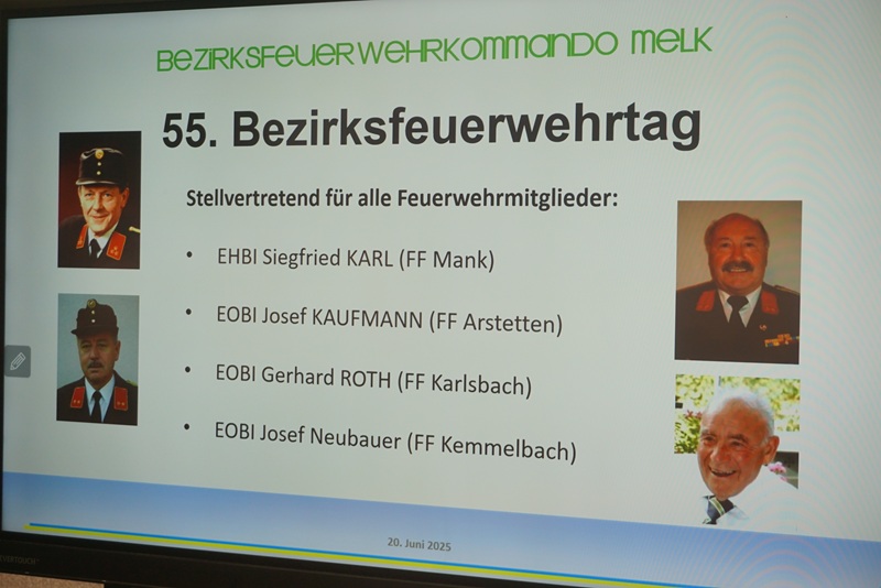 Die Sachbearbeiter des Bezirksfeuerwehrkommandos legten im Vorfeld dem BFKDO ihre Berichte in schriftlicher Form vor. Diese wurden im Zuge des Tätigkeitsberichts von BR Ing. Anton Jaunecker den Teilnehmern der 61 anwesenden Feuerwehren des Bezirkes Melk zur Kenntnis gebracht.