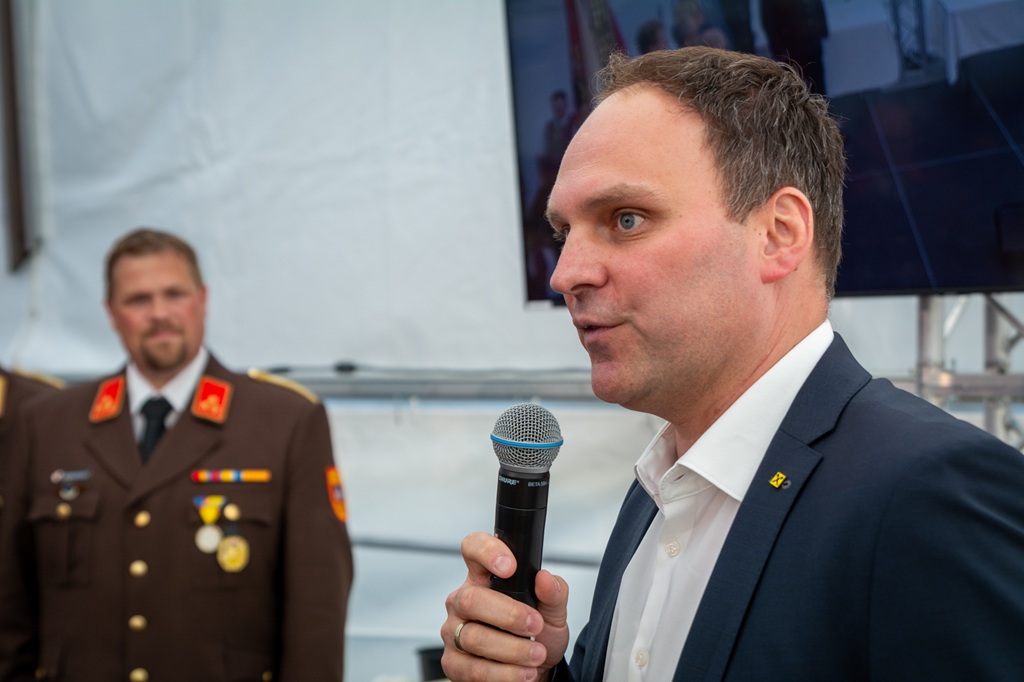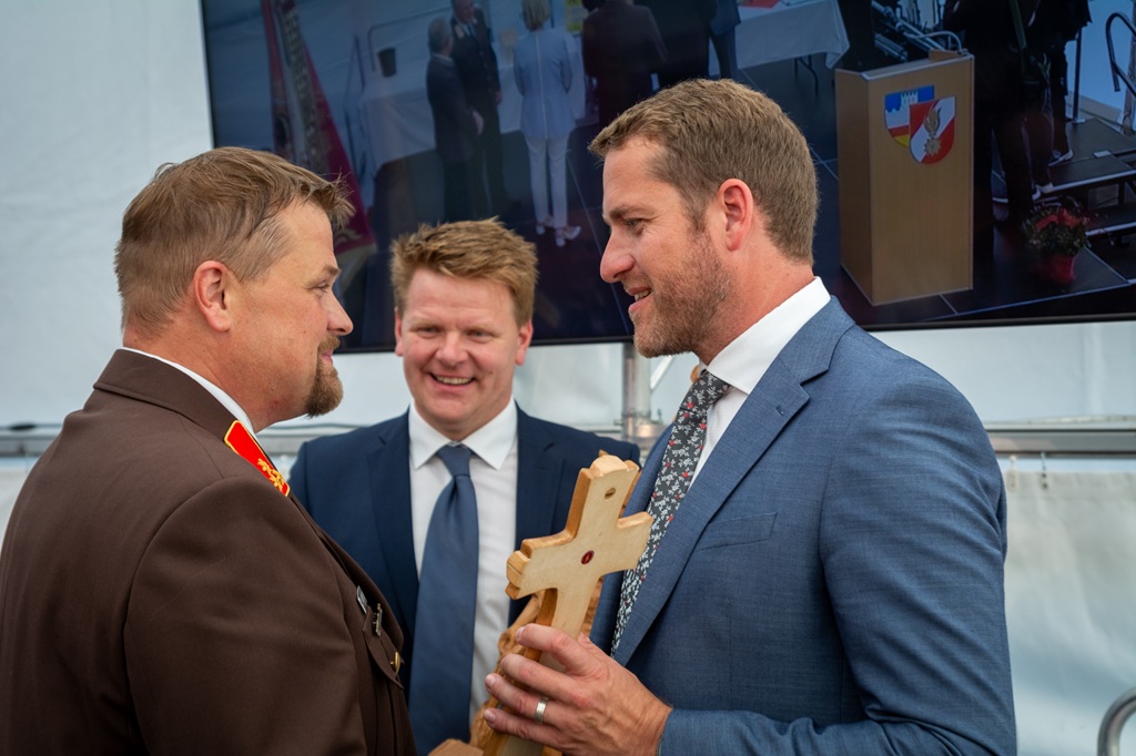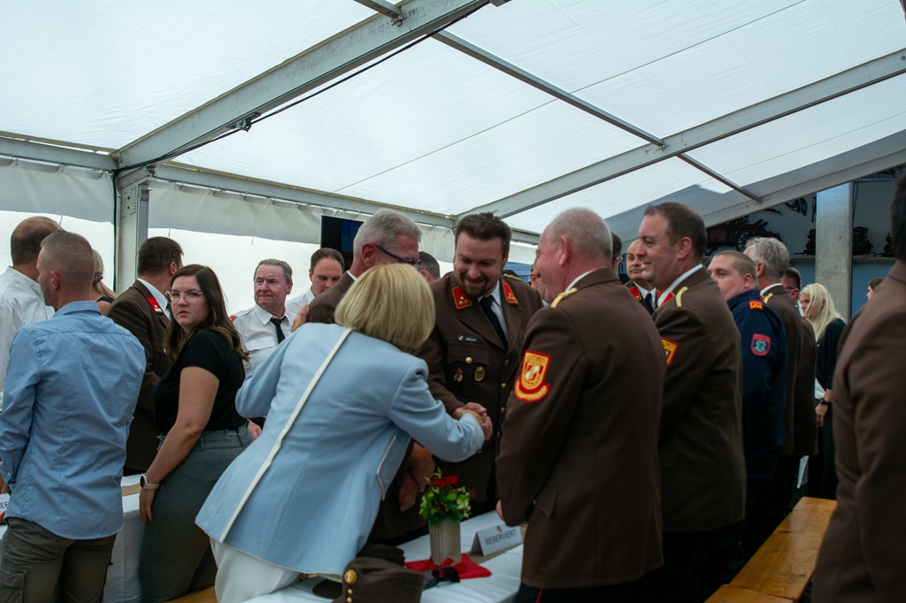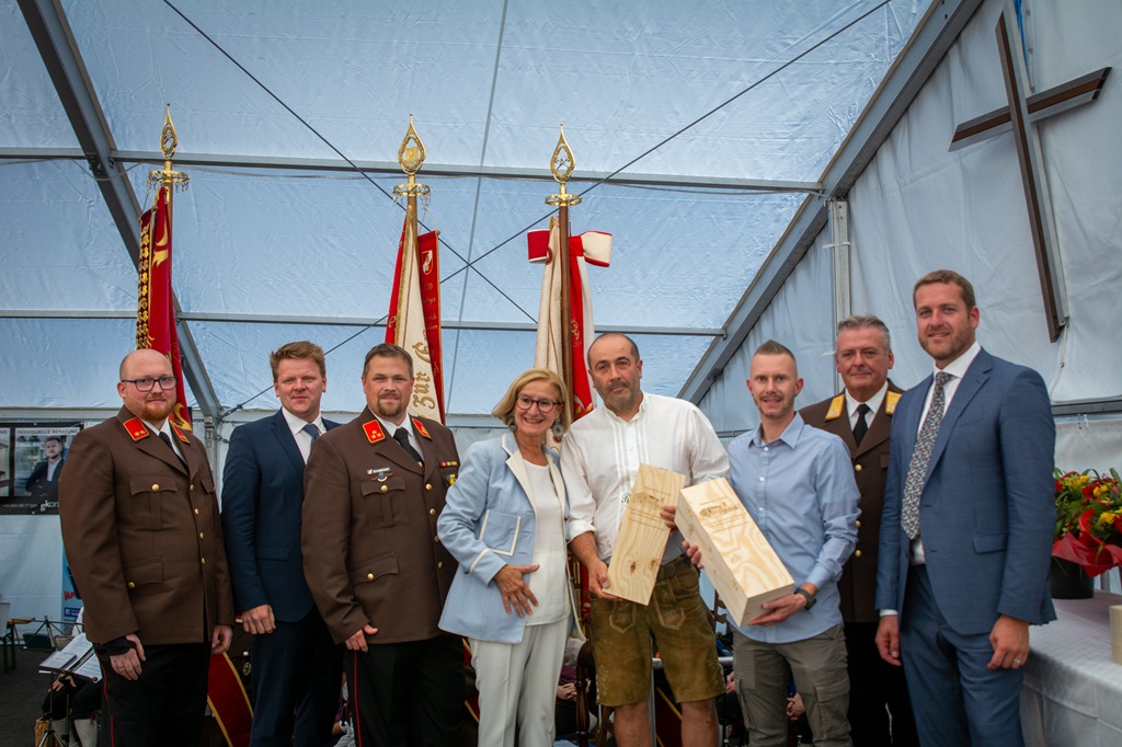 Bürgermeister Martin Berger betonte: „Unser neues Feuerwehrhaus ist weit mehr als ein Einsatzgebäude, es ist Zeichen und Ergebnis gelebter Gemeinschaft.“ Die Zahlen sind beeindruckend: Mit einem Investitionsvolumen von rund 3,1 Millionen Euro blieb man erstaunliche 900.000 Euro unter dem geplanten Budget. Dies war nur durch die 6300 Stunden an Eigenleistung möglich. „Dafür ein ganz großes Dankeschön,“ so Martin Berger. Ein großer Dank gilt auch dem