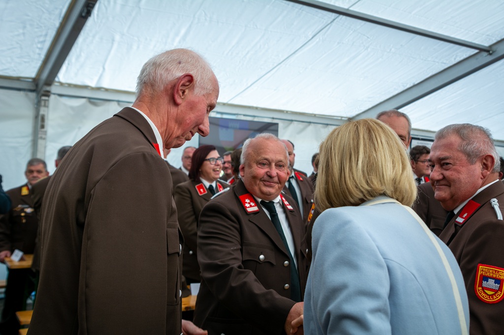 Sie würdigte das Engagement der vielen Ehrenamtlichen, das keine Selbstverständlichkeit sei: „Das ist es, worauf es ankommt. Denn es ist keine Selbstverständlichkeit, ehrenamtlich tätig zu sein. Die bereit sind in der Nacht aufzustehen und unter Tags die Arbeit zu unterbrechen. Die Familie zurücklassen, um in den Einsatz zu gehen. Dankeschön für euren Einsatz.“ Besonders erfreut zeigte sich die Landeshauptfrau auch über die neugegründete Feuerwehrjugend in Schollach. Dies steht für das gemeinsame Ziel: Alles zu tun für die beste Zukunft unserer Kinder
