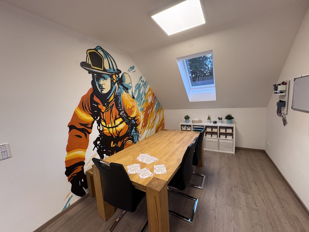 Nachwuchsarbeit wird groß geschrieben so spielt der neue Raum der Feuerwehrjugend alle Stücke... und für die ganz jungen gibt es im Damenbereich der Garderoben einen Wickeltisch!