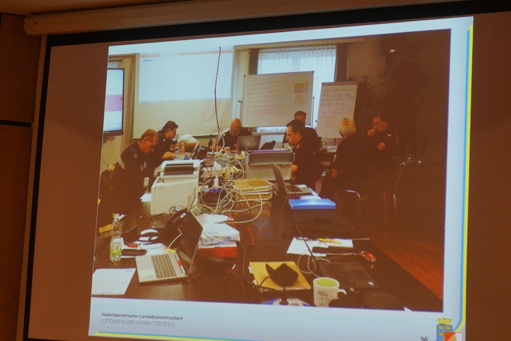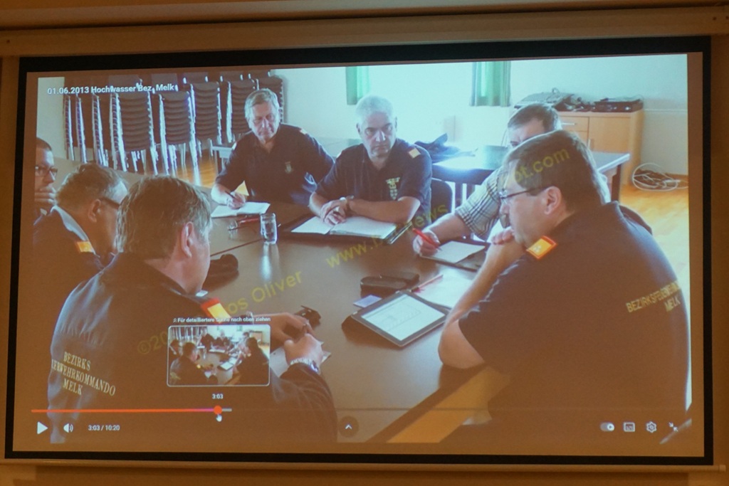 Nach einer kurzen Übersicht der Themen erfolgte ein Rückblick in Form von Bildern, Videoaufzeichnungen sowie einer Power Point Präsentation der letzten Jahre, wobei die vom Bezirksführungsstab abzuarbeitenden Einsätze sowie der durchgeführten Übungen ersichtlich waren.