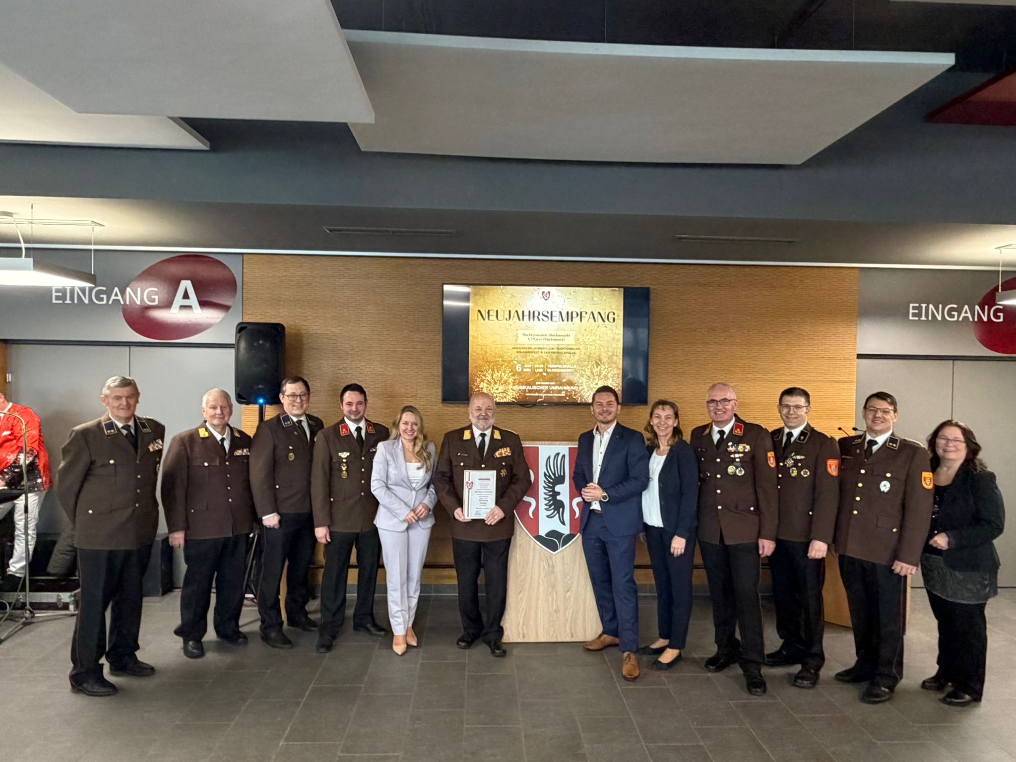 Beim traditionellen Neujahrsempfang der Marktgemeinde Blindenmarkt am 6. Jänner 2026 wurde Brandrat Manfred Schmidl von Bürgermeister Albert Brandstetter und Vizebürgermeisterin Anita Pitzl mit dem Ehrenring der Marktgemeinde Blindenmarkt in Gold ausgezeichnet. Auch das Feuerwehrkommando sowie zahlreiche Mitglieder der Freiwilligen Feuerwehr Blindenmarkt waren anwesend, um Manfred Schmidl zu dieser besonderen Ehrung zu gratulieren.