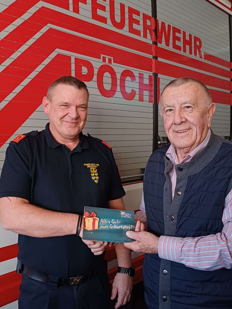 Die Freude darüber wirkte noch lange nach – und übertrug sich schließlich auch auf andere Pöchlarnerinnen und Pöchlarner. Denn dem Wunsch des Jubilars, auf Geschenke zu verzichten und stattdessen eine Spende zugunsten der Freiwilligen Feuerwehr Pöchlarn zu leisten, kamen viele Gäste gerne nach.