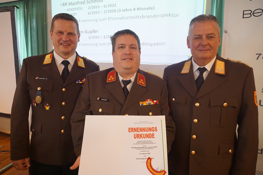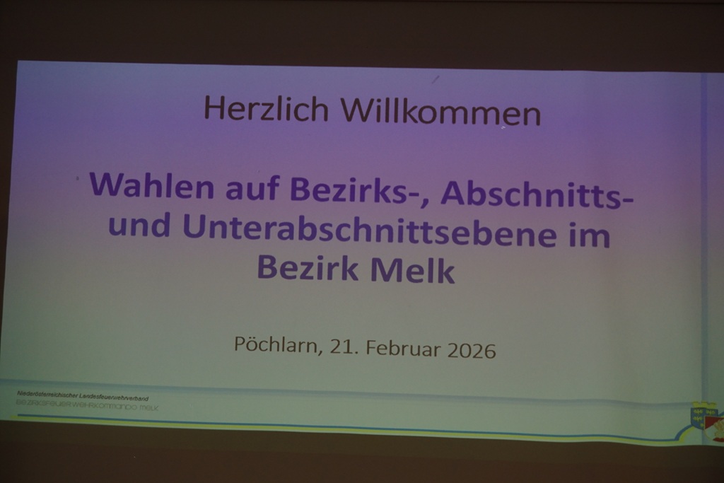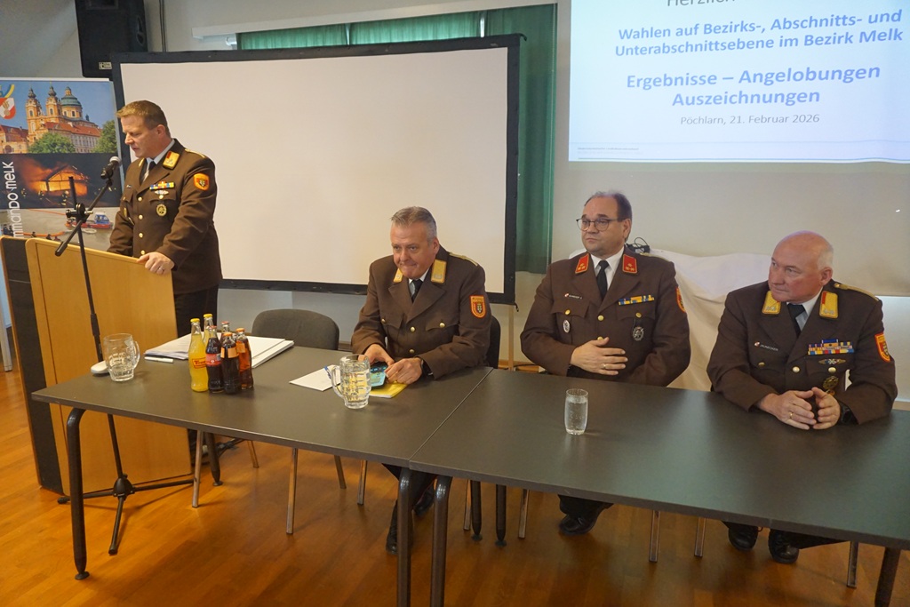 Am Samstag den 21. Februar 2026 fanden im Feuerwehrhaus Pöchlarn die Wahlen des Bezirksfeuerwehrkommandanten, des Bezirksfeuerwehrkommandantenstellvertreters, der Kdt bzw. Kdtstv der 5 Feuerwehrabschnitte - Mank, Melk, Persenbeug, Pöggstall, Ybbs sowie der Unterabschnittsfeuerwehrkommandanten der jeweiligen Abschnitte statt.