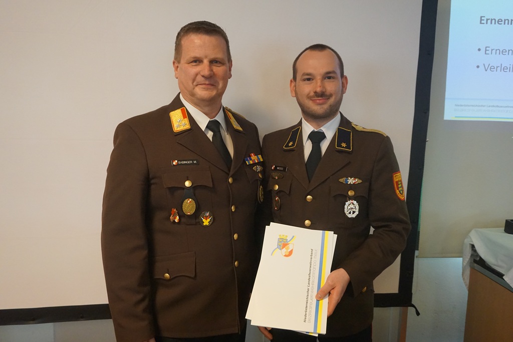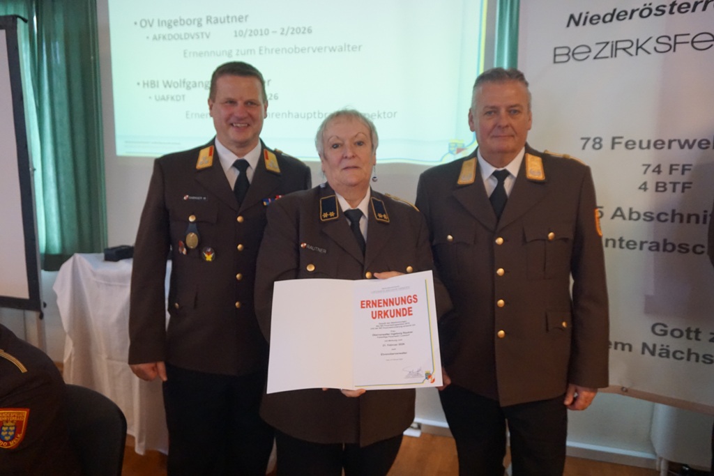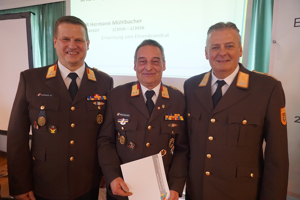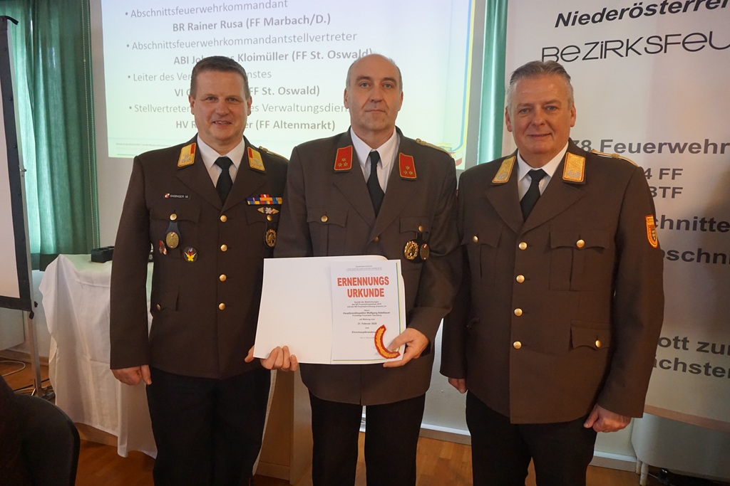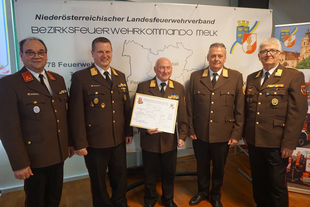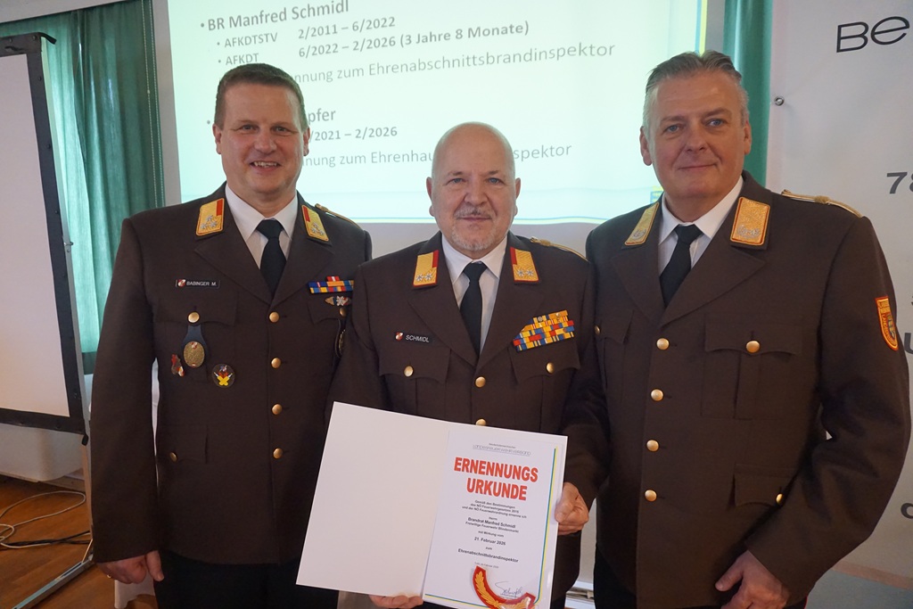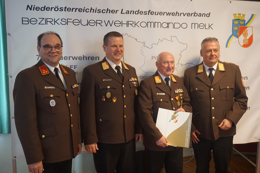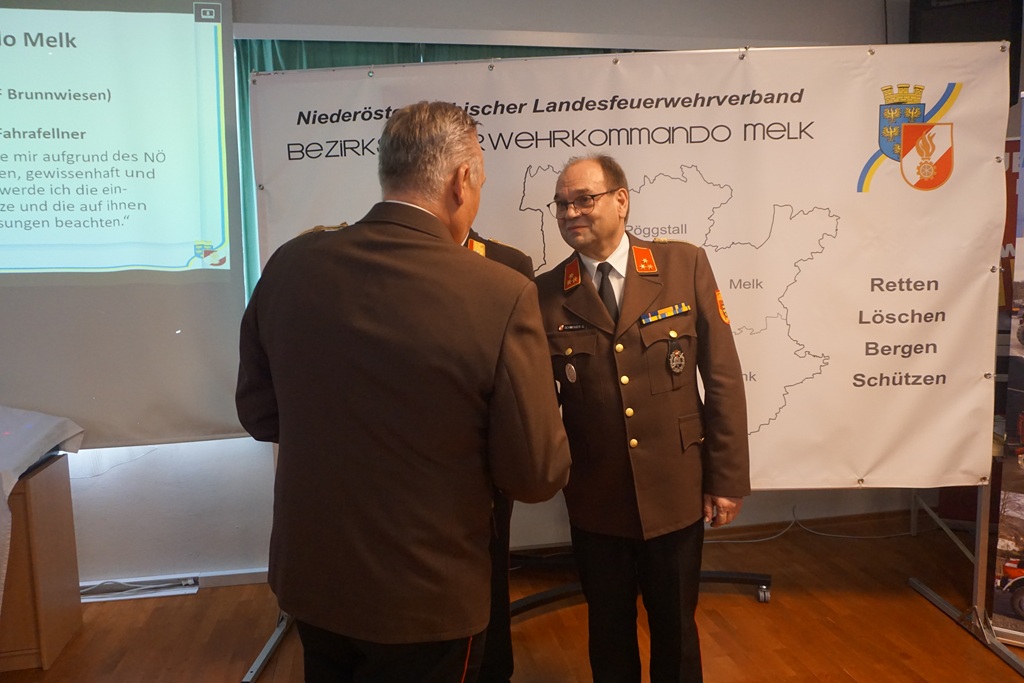 Nach den Wahlen wurde den nicht mehr zur Wahl angetretenen Funktionäre seitens des Bezirksfeuerwehrkommandanten der Ehrendienstgrad verliehen.
