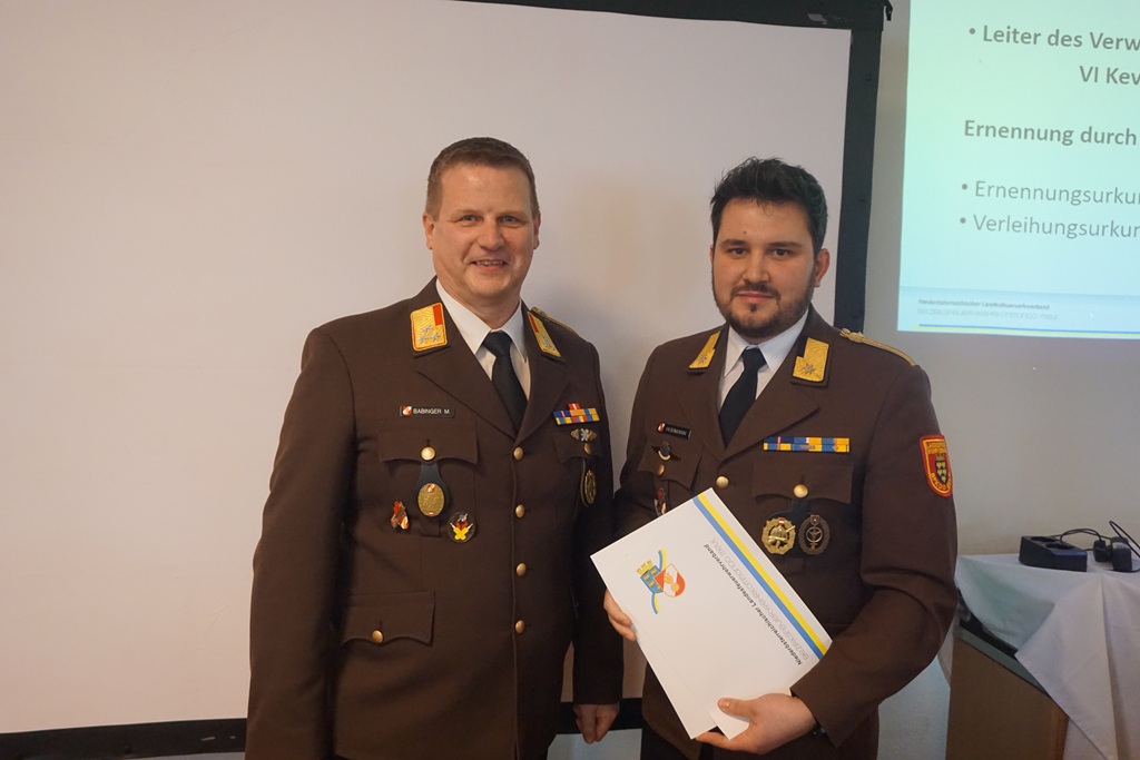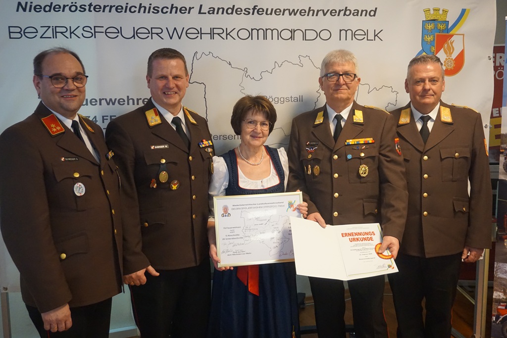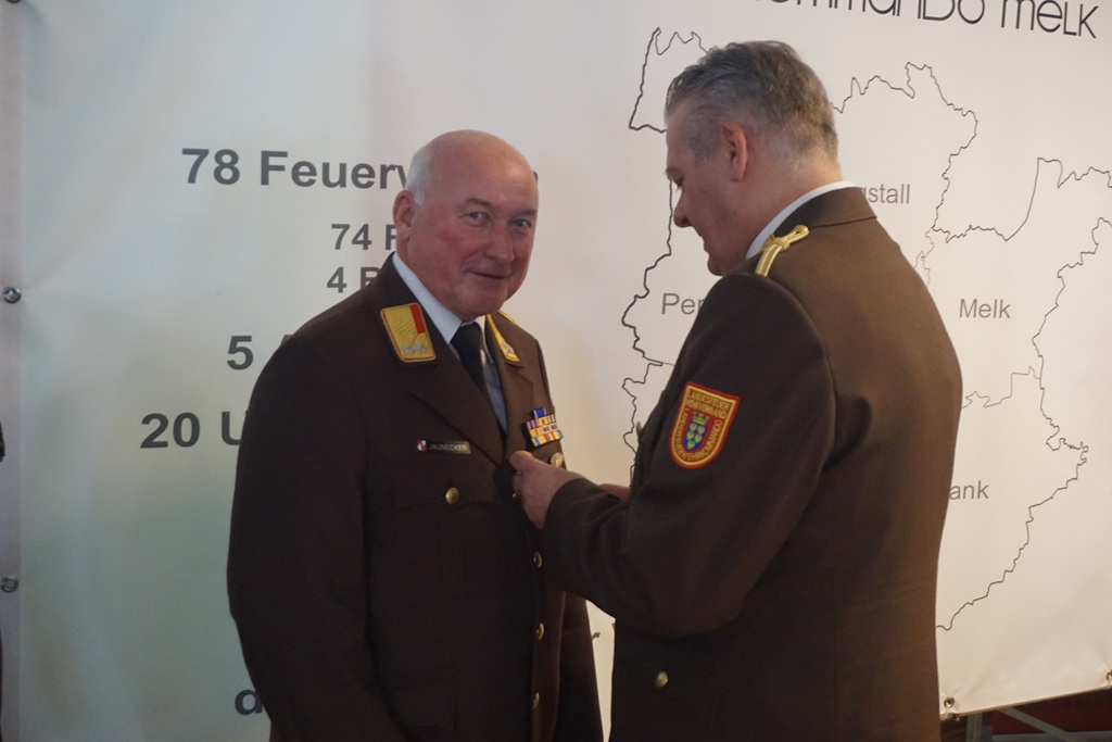 Seitens des NÖ Landesfeuerwehrverbandes wurde BR Anton Jaunecker für seine Leistungen die Verdienstmedaille Klasse 1 in Gold verliehen.