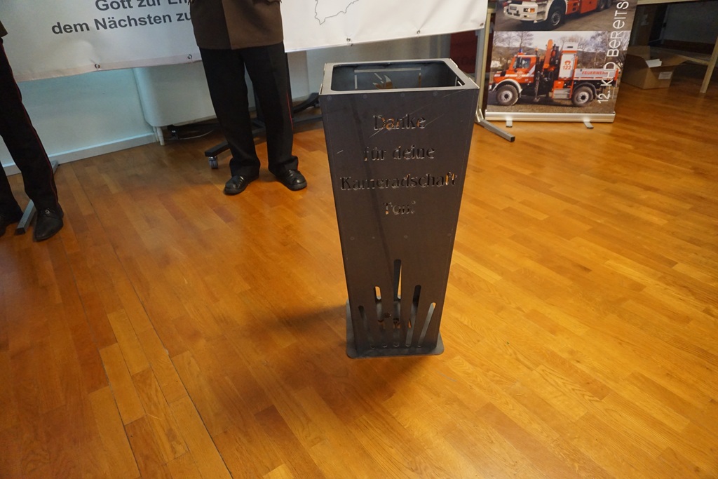 Für die aus dem Bezirksfeuerwehrkommando scheidenden Bfkstv BR Anton Jaunecker und Verwalter VR Engelbert Gundacker, welche ebenfalls der Ehrendienstgrad verliehen wurde, gab es seitens des Bezirksfeuerwehrkommando je ein Abschiedsgeschenk.