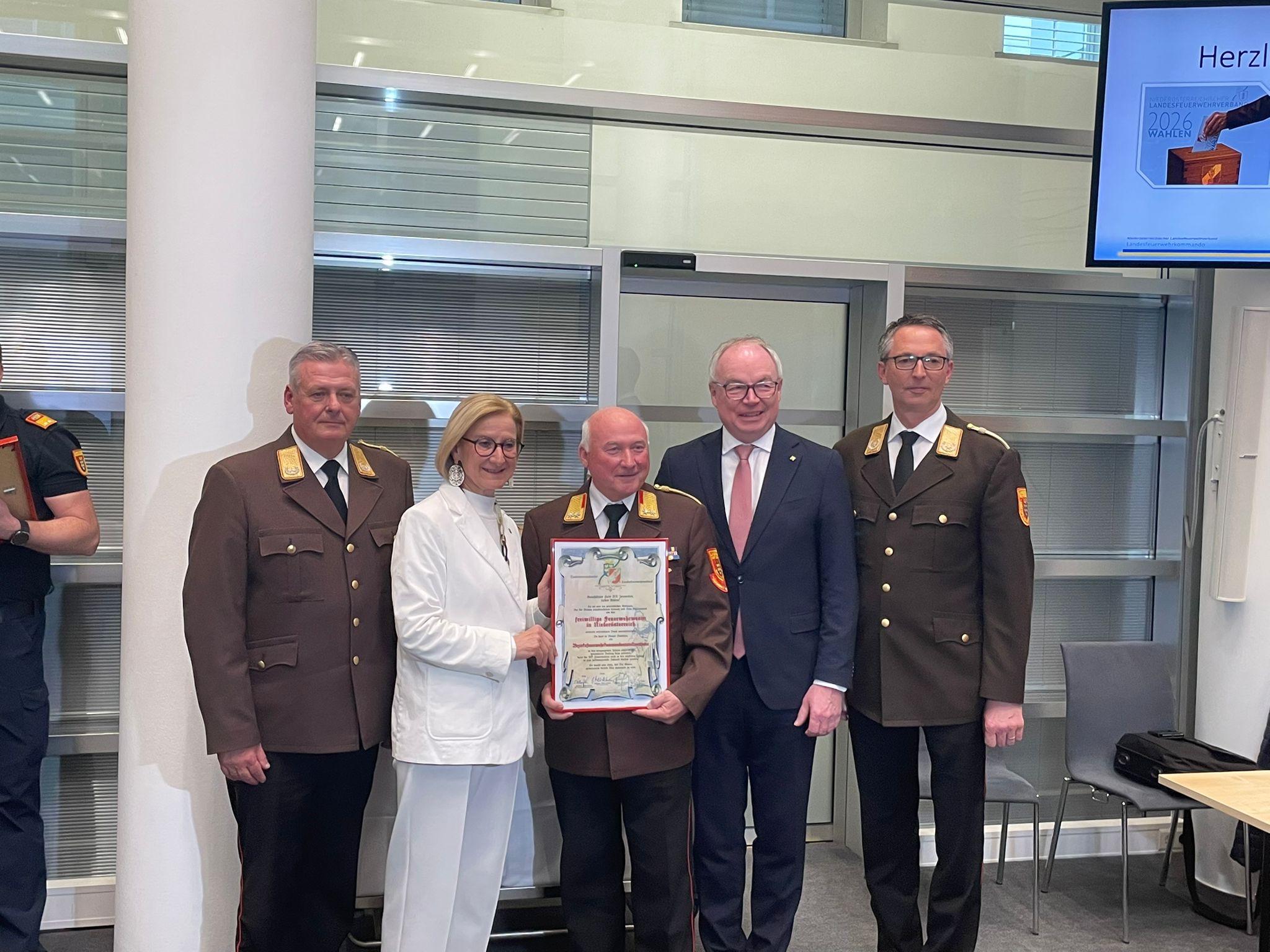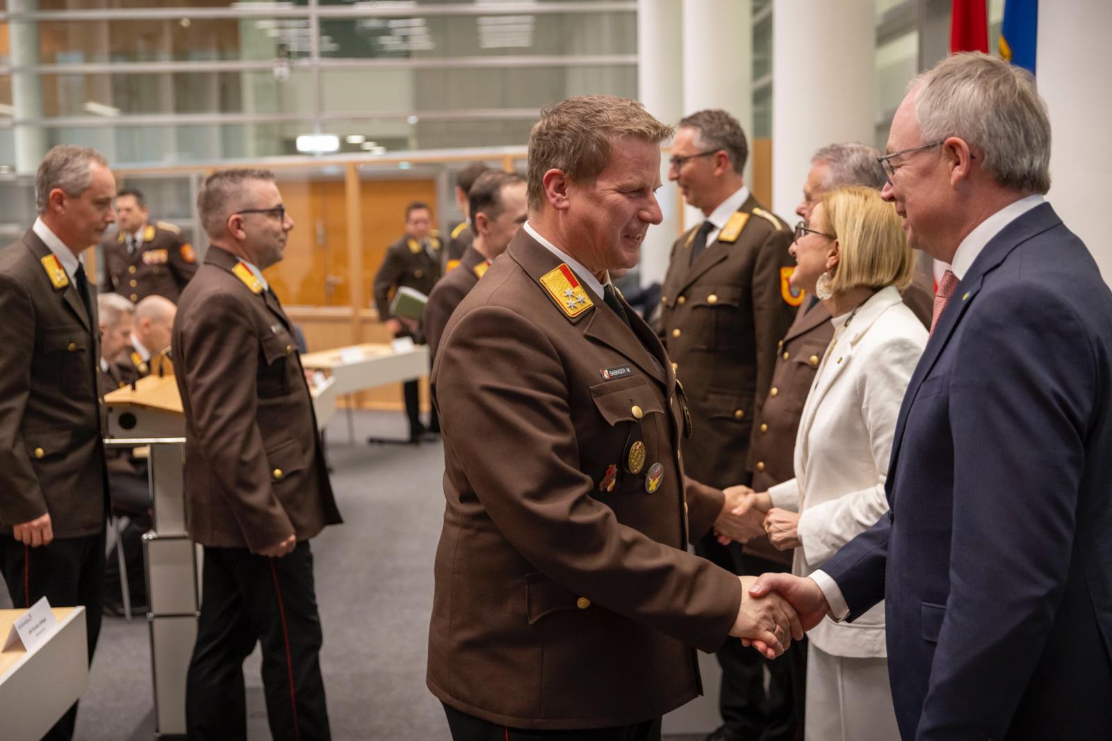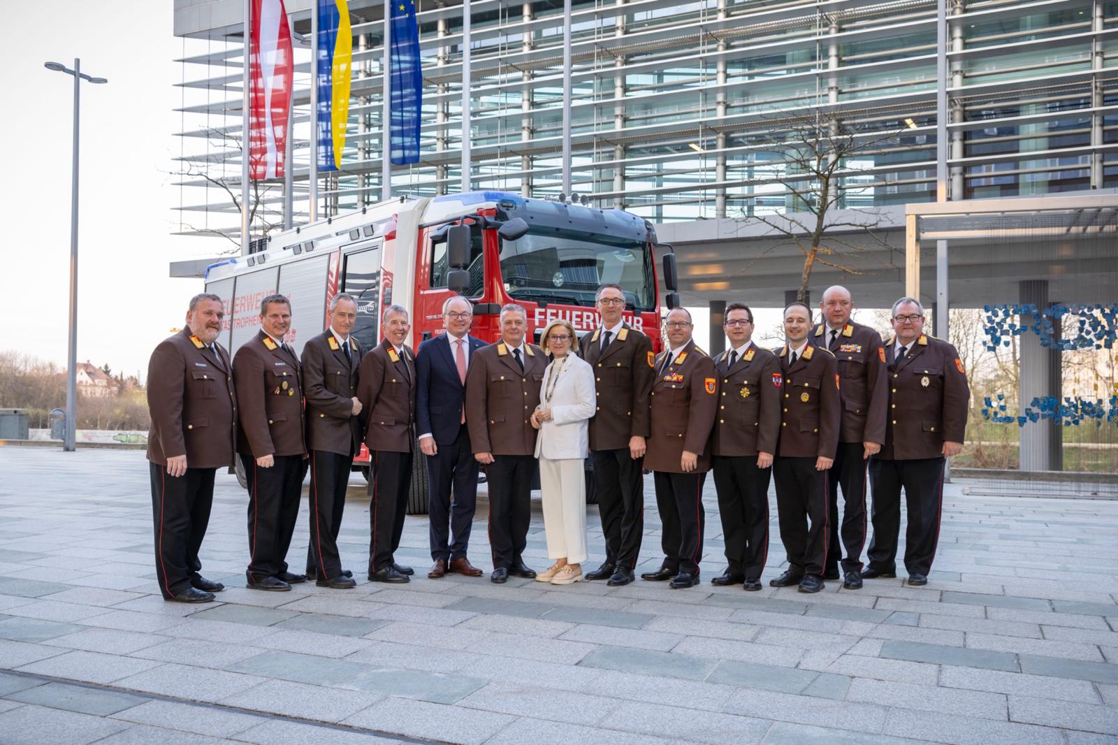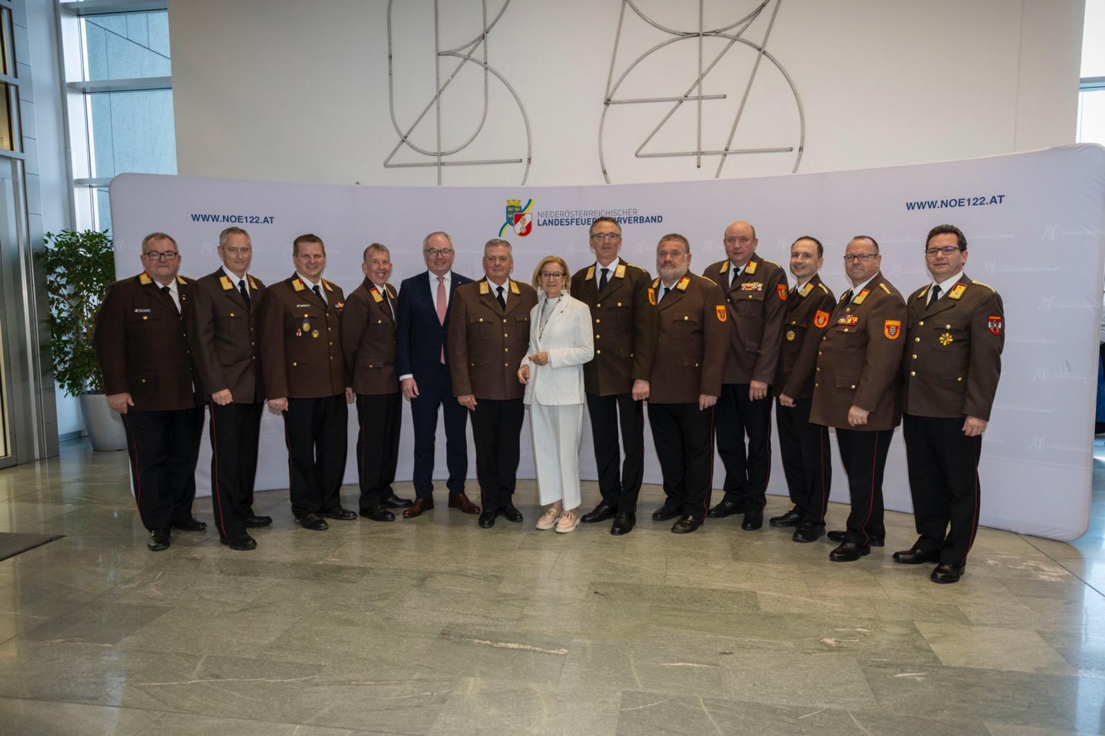 Im Leopoldsaal des NÖ Landhauses in St. Pölten wurde Landesfeuerwehrkommandant Dietmar Fahrafellner am 20. März 2026 in seiner Funktion bestätigt, ebenso sein Stellvertreter Martin Boyer. Landeshauptfrau Johanna Mikl-Leitner übermittelte ihre Glückwünsche zur Wiederwahl und hob das entgegengebrachte Vertrauen als Ausdruck von Stabilität und Verlässlichkeit hervor.