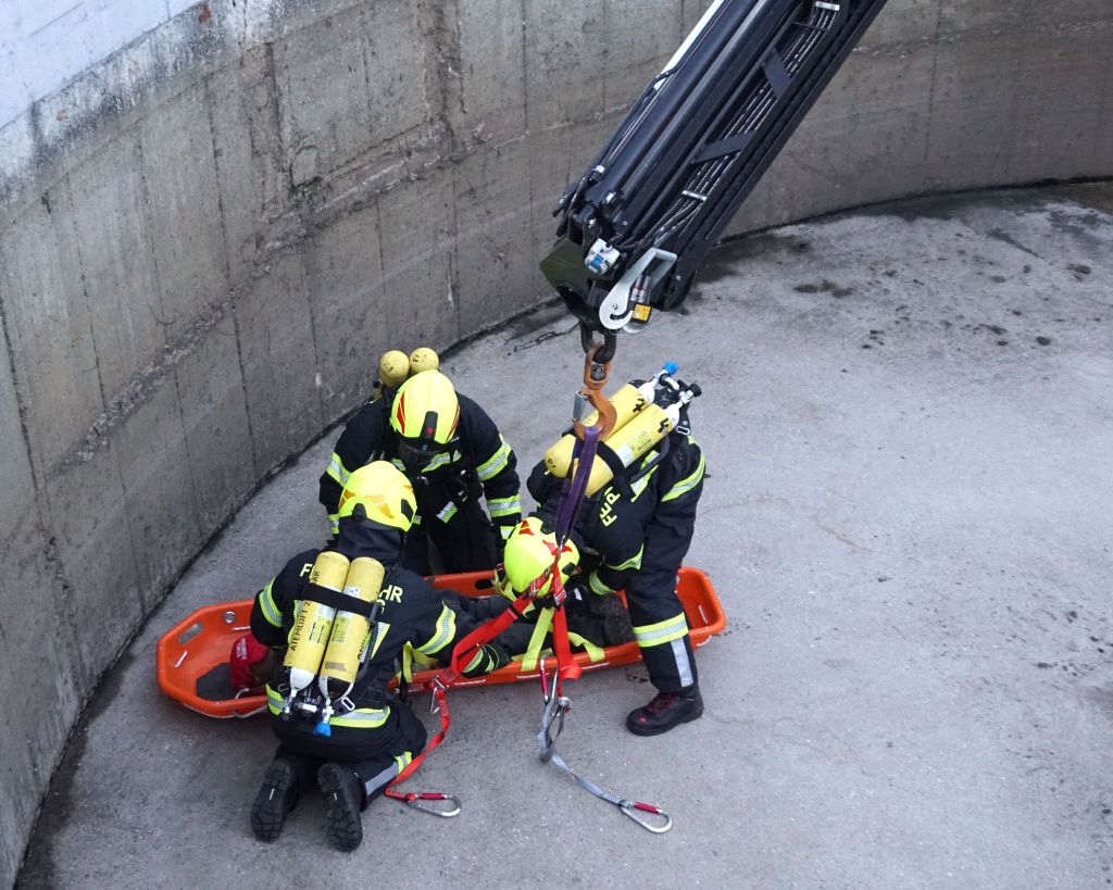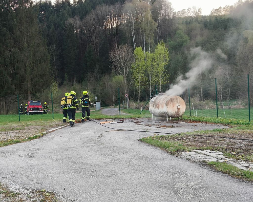 Ein Atemschutztrupp übernahm umgehend die Erkundung sowie die Rettung einer verunfallten Person. Im weiteren Verlauf wurden zusätzliche Kräfte (FF Ysper, FF Kapelleramt, FF Pisching) nachalarmiert, um mehrere Szenarien abzuarbeiten. Darunter der Aufbau der Einsatzleitung und eines Atemschutzsammelplatzes, das Löschen und Kühlen eines brennenden Gastanks, die Rettung einer abgestürzten Person mithilfe des Kranes sowie die Rettung zweier dem Schadstoff ausgesetzter bewusstloser Personen unter Atemschutz. Parallel dazu wurde eine Wasserversorgung aus der Ysper aufgebaut sowie eine Ölsperre errichtet.