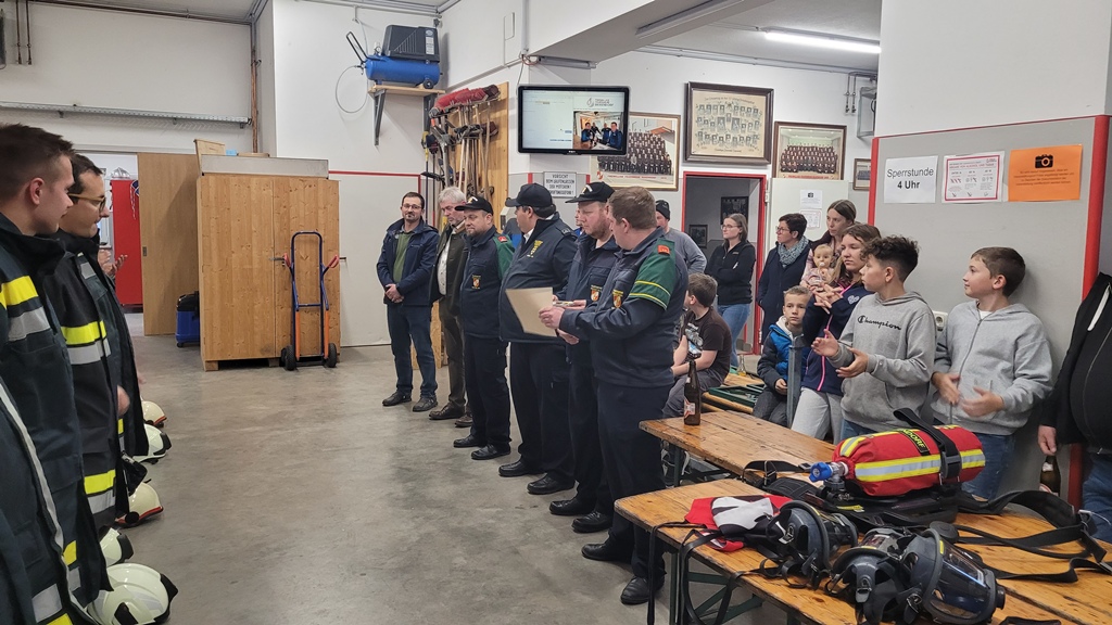Um ca. 16:30 Uhr fand die feierliche Verleihung der Abzeichen statt. Dabei waren der Bürgermeister von Raxendorf, Johannes Höfinger, HV Stephan Knoll vom Abschnittsfeuerwehrkommando und einige interessierte Zuschauer anwesend.