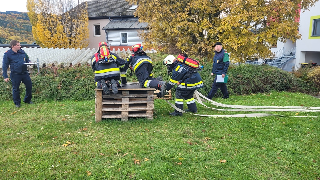 Am Samstagnachmittag, den 25. Oktober absolvierten vier Gruppen die Ausbildungsprüfung Atemschutz, davon zwei in Bronze und zwei in Silber.Ab 13:00 Uhr stellten sich die Gruppen dem Prüferteam um Harald Gruber. In Bronze wurden die vier Kameraden fixen Positionen zugeordnet, in Silber mussten die Positionen gelost werden. Bei der Prüfung gab es folgende vier Stationen zu absolvieren.