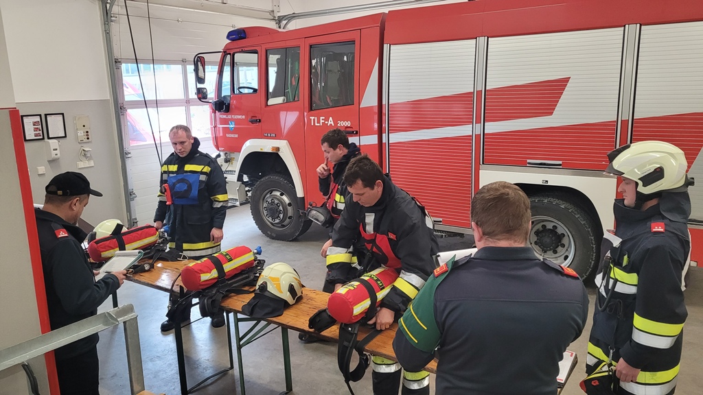 Nach dem Einsatz muss die Einsatzbereitschaft wieder hergestellt werden und die Atemschutzgeräte müssen vorschriftsgemäß überprüft werden. Der Gruppenkommandant muss theoretische Fragen zum Thema Atemschutz beantworten.