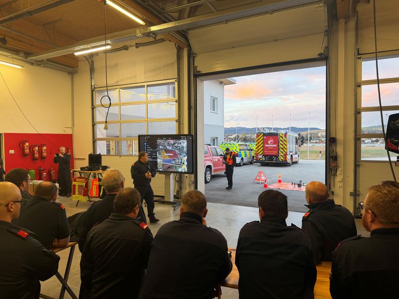 Ein weiterer wichtiger Bestandteil war die praktische Vorführung, bei der die Drohne samt Anbauteilen – wie beispielsweise dem Suchscheinwerfer – und deren Funktionen live präsentiert wurden. Ein besonderer Fokus lag dabei auf FlightHub 2, welches eine moderne und strukturierte Einsatzführung auch bei mehreren gleichzeitig eingesetzten Drohnen ermöglicht.