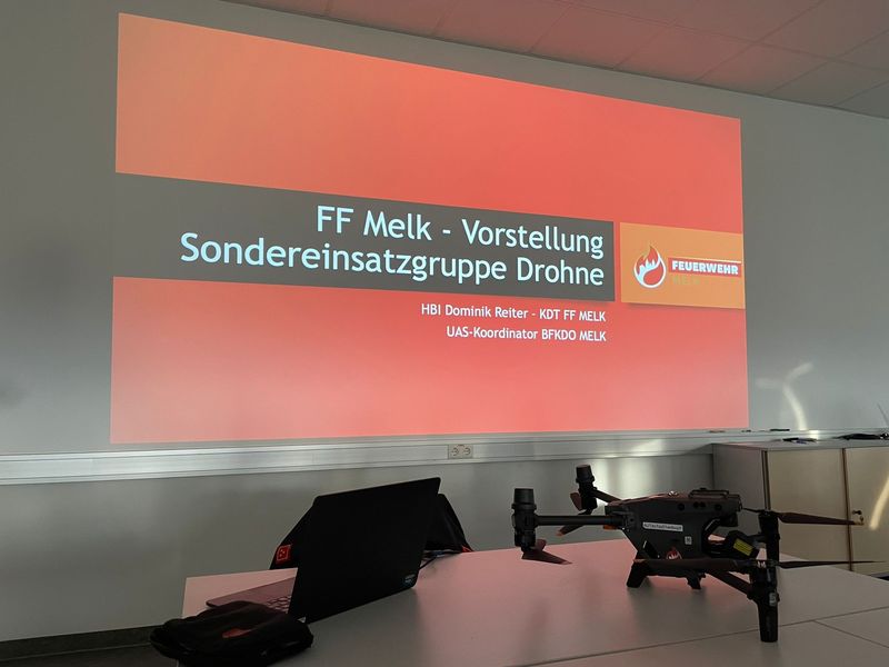 Im Rahmen der Schulung wurde die Drohnengruppe der Freiwilligen Feuerwehr Melk vorgestellt sowie Einblicke in die eingesetzte Technik und die Ausbildung der Drohnenpiloten gegeben. Ebenso wurden die rechtlichen Grundlagen und relevanten Dienstanweisungen im Feuerwehrdienst behandelt.