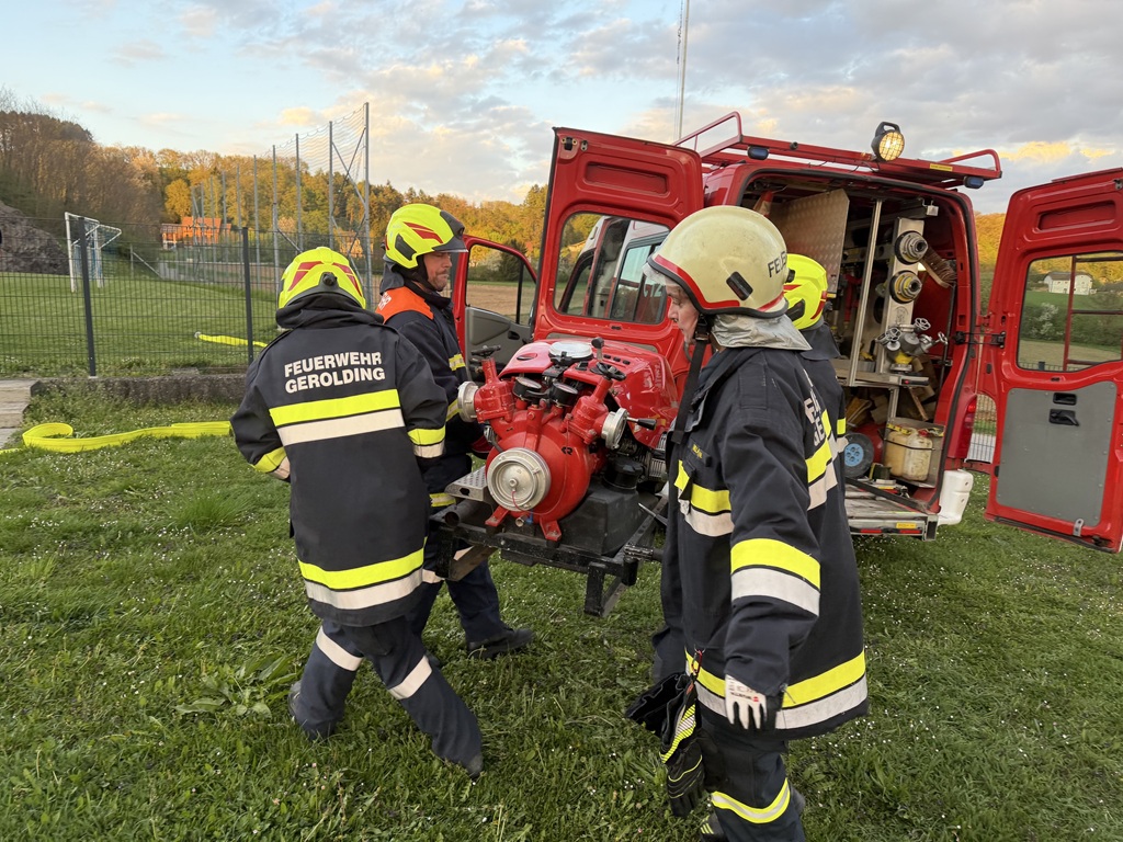 GEROLDING. Am 17. April 2026 fand in Gerolding die Inspektionsübung des Unterabschnitts UA 4 Dunkelsteinerwald statt. Dabei wurde eine Relaisleitung vom Freibad bis zur Siedlung Sonnenweg über eine Länge von rund 600 Metern aufgebaut. Vier Pumpen standen im Einsatz.