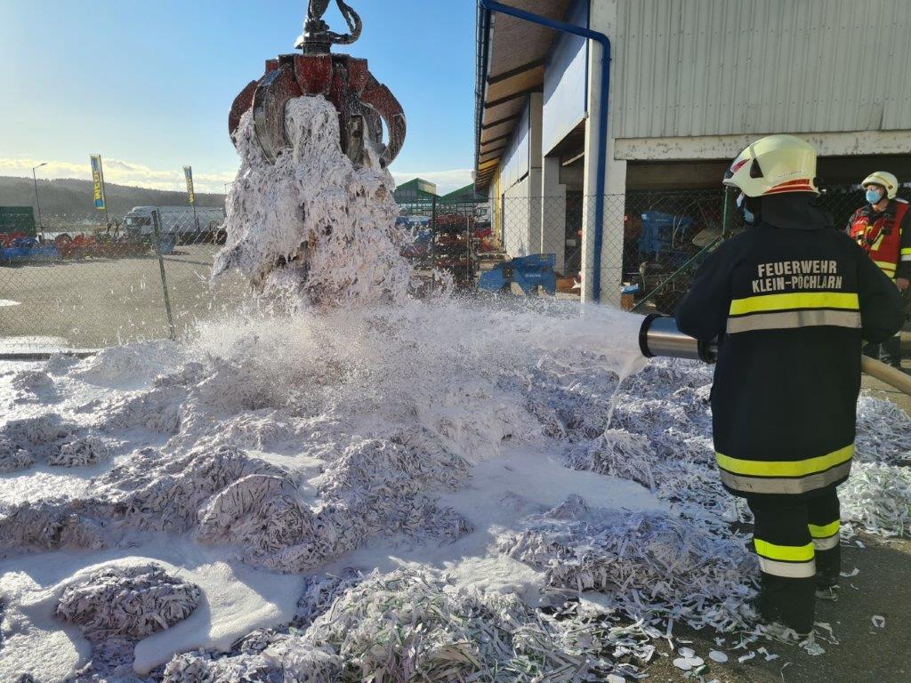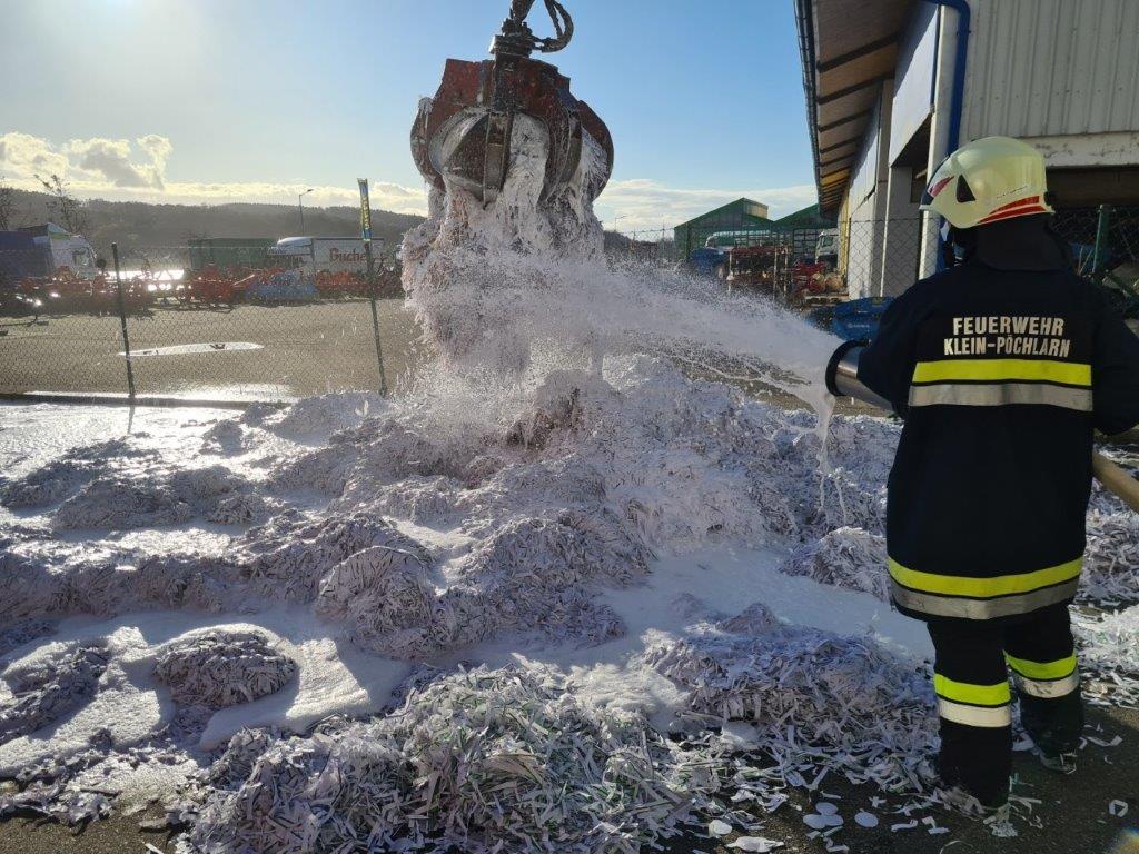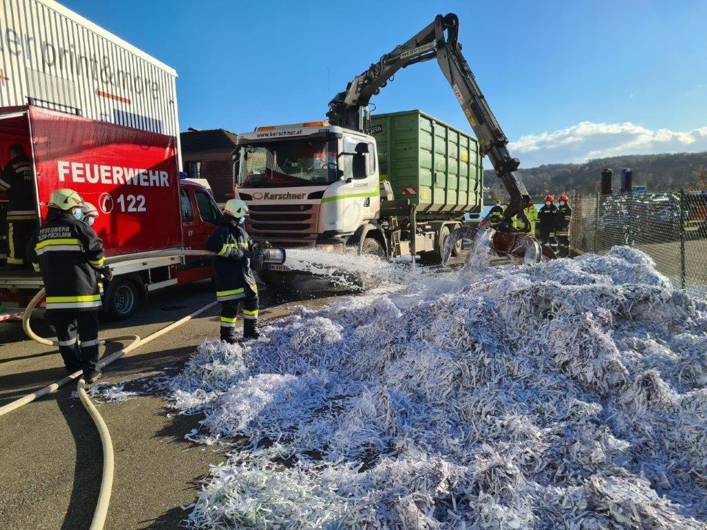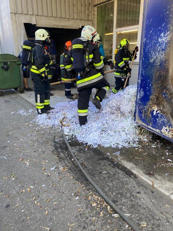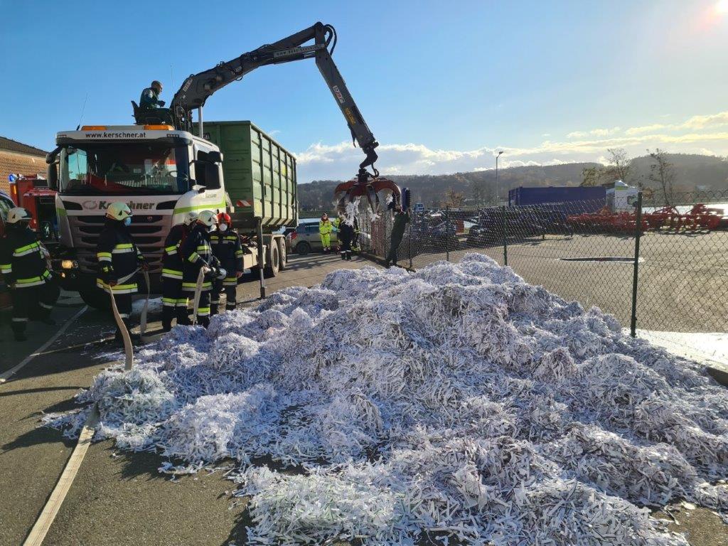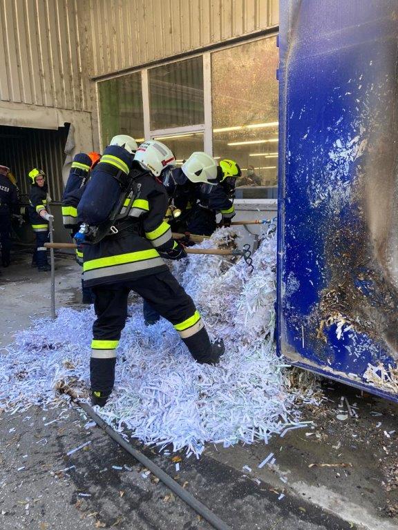 Nachdem der Brand gelöscht werden konnte, wurde der Container mithilfe eines Wechselladefahrzeuges auf einer freien Fläche entleert. Das gepresste Material wurde mit einem Ladekran zerteilt sowie mittels Schaumittel bedeckt, um sicherzugehen, dass sich die Ladung nicht mehr entzündet. Mit der Wärmebildkamera wurde auch eine Endkontrolle am Abfall vorgenommen. Der Abtransport des Restmaterials wurde durch eine Entsorgungsfirma durchgeführt.