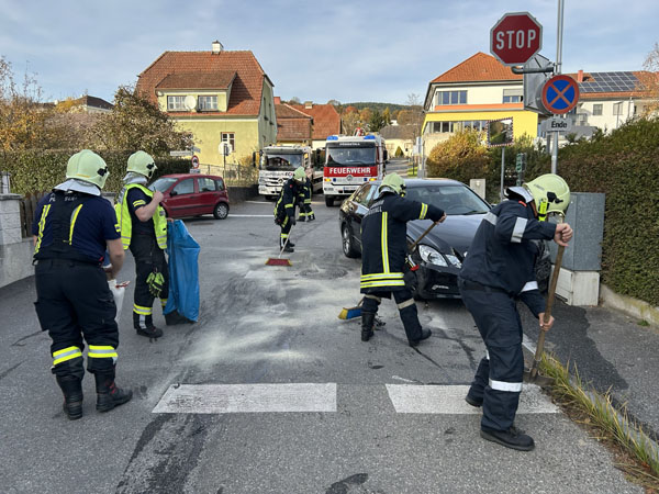 Am Nachmittag von Halloween, dem 31.10.2025, wurde die Freiwillige Feuerwehr Pöggstall zu einer PKW-Bergung alarmiert.An einer Kreuzung im Ortsgebiet von Pöggstall kam es gegen 14:30 Uhr zu einem Zusammenstoß zweier PKWs, wobei bei beiden Fahrzeug sämtliche Airbags auslösten und diese danach nicht mehr fahrbereit waren.