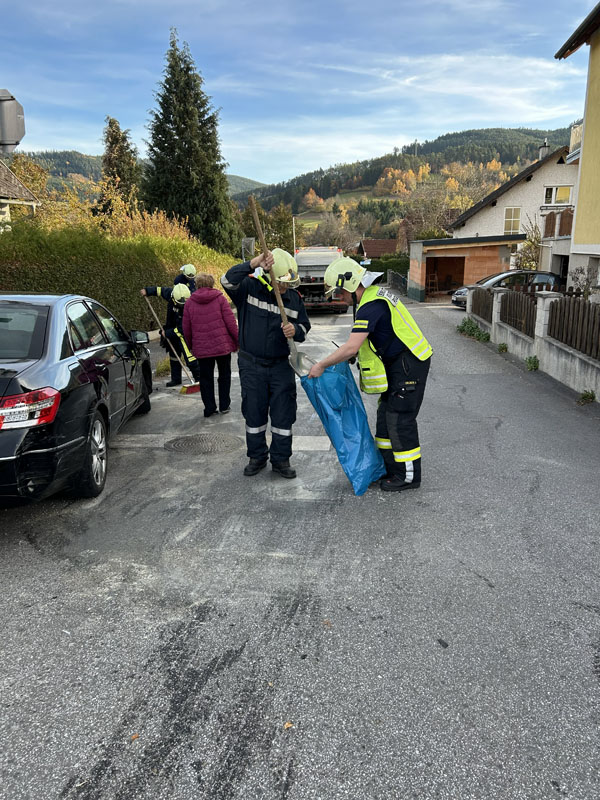 Nach Absichern der Unfallstelle, wurden die verunfallten PKWs von der Fahrbahn entfernt und diese danach gereinigt sowie Ölrückstände gebunden. Verletzte gab es zum Glück nicht. Ebenfalls anwesend war eine Streife der Polizei.