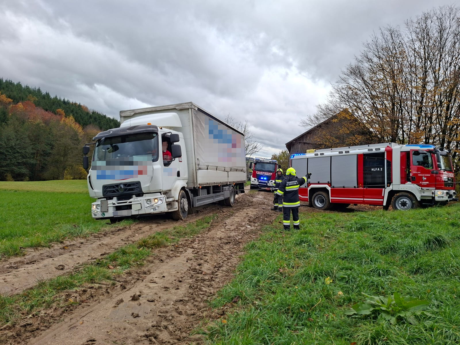 Am 3. November 2025 drohte um 09:11 Uhr in Hörgerstall ein LKW umzustürzen.