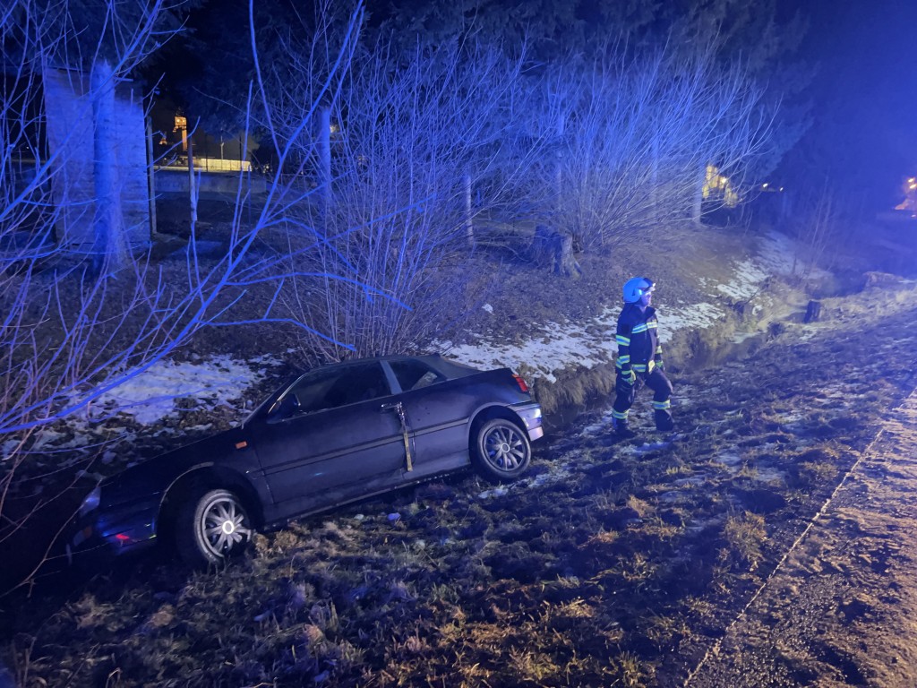 Ein Pkw geriet von der Fahrbahn ab und landete im daneben liegenden, tiefgelegenen Bachbett.