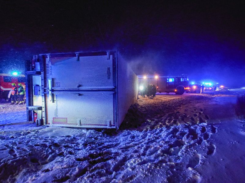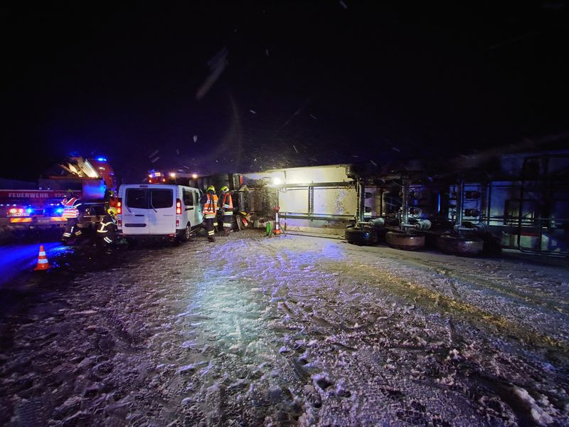 Aufgrund eines massiven Wintereinbruchs mit starkem Schneefall und glatten Fahrbahnen verlor ein LKW-Lenker aus bislang unbekannter Ursache die Kontrolle über sein Fahrzeug. Der Sattelzug kippte zur Seite und blockierte die gesamte Fahrbahn. Zwei nachkommende PKW kollidierten mit dem LKW-Auflieger. Entgegen ersten Befürchtungen waren keine Personen in den Unfallfahrzeugen eingeklemmt – die Verletzten wurden vom Rettungsdienst versorgt.