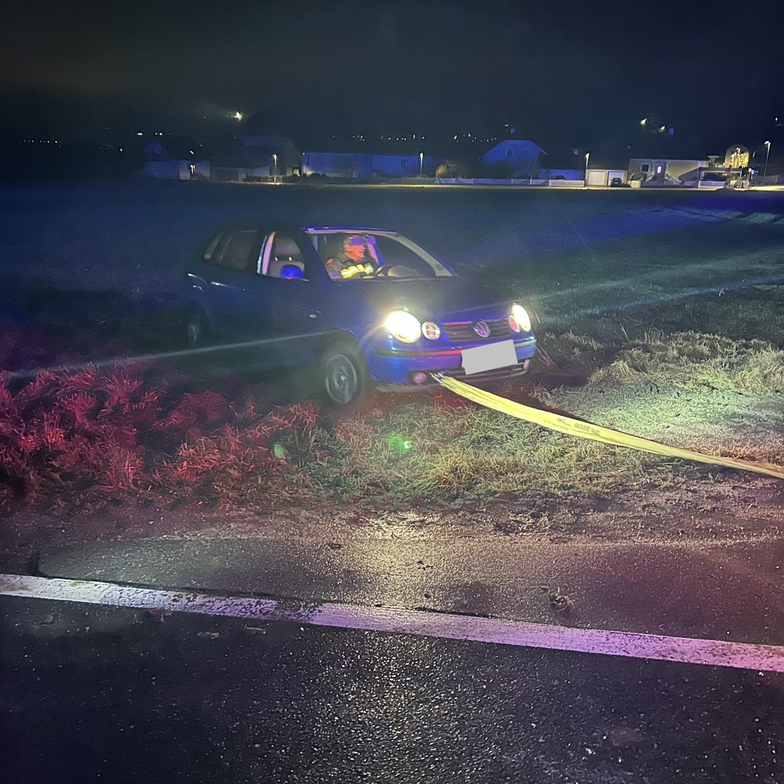 Das Fahrzeug wurde möglichst schonend aus dem Ackerland geborgen und anschließend gesichert abgestellt. Abschließend reinigten wir die Fahrbahn und stellten die Verkehrssicherheit wieder her.