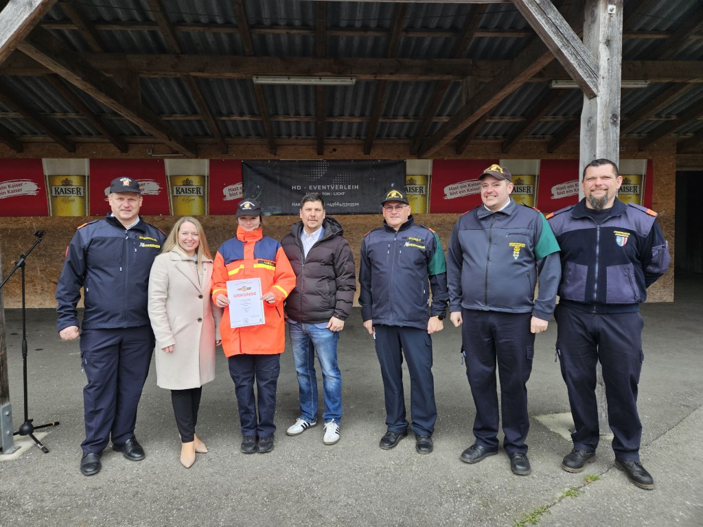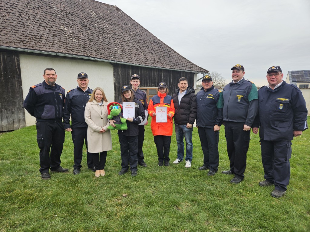 Bezirkshauptfrau Daniela Obleser betonte die wichtige Zusammenarbeit mit der Feuerwehr – sowohl im Bezirk als auch darüber hinaus – und wünschte den jungen Mitgliedern alles Gute für ihren weiteren Weg.