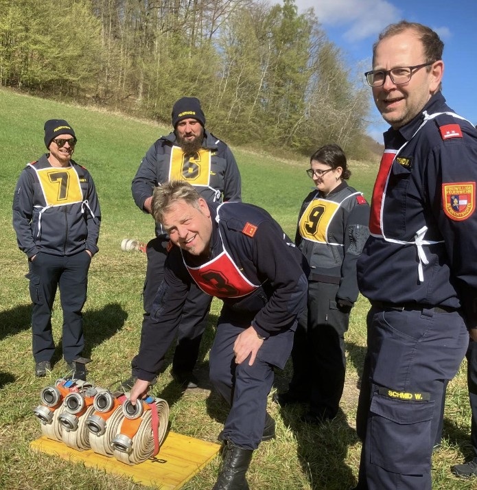Hauptbewerter, Bezirkssachbearbeiter FJ Pallsteiner Gerhard führte am Vormittag durch den theoretischen und praktischen Teil im Feuerwehrhaus Häusling. Bei schönem Wetter und Sonnenschein ging es im Stationsbetrieb beim praktischen Teil auf die Bewerbs- und Staffelbahn.